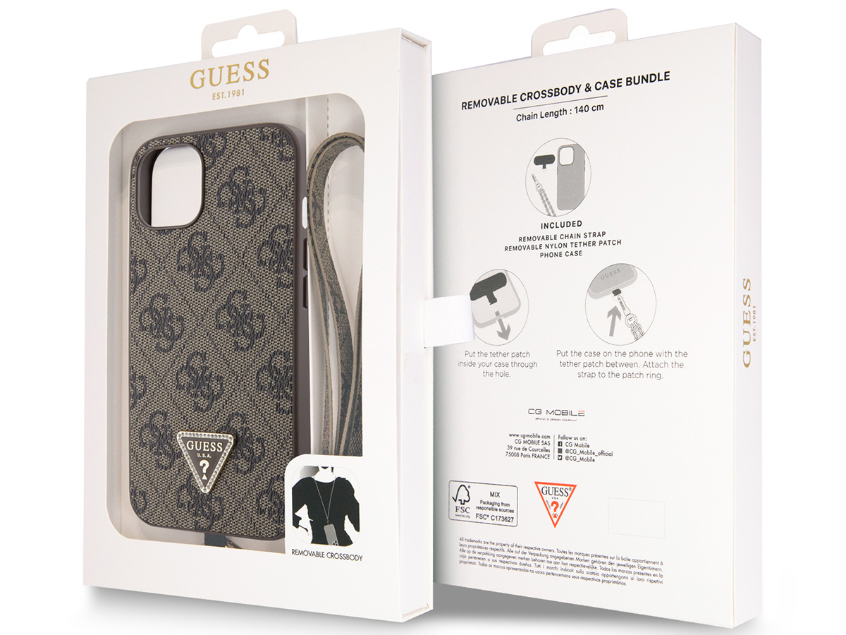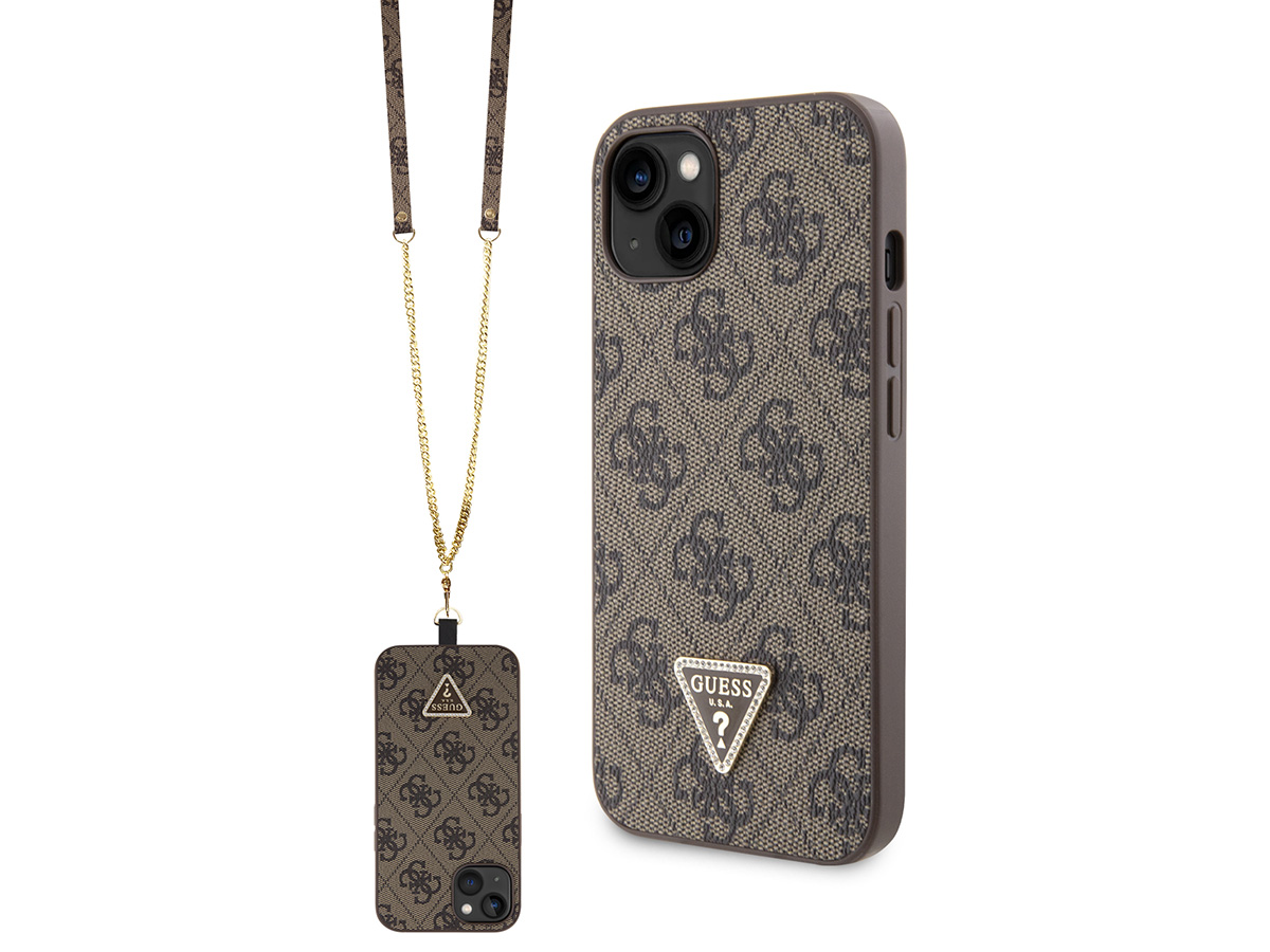 Guess 4G Monogram Necklace Case Bruin - iPhone 13 hoesje