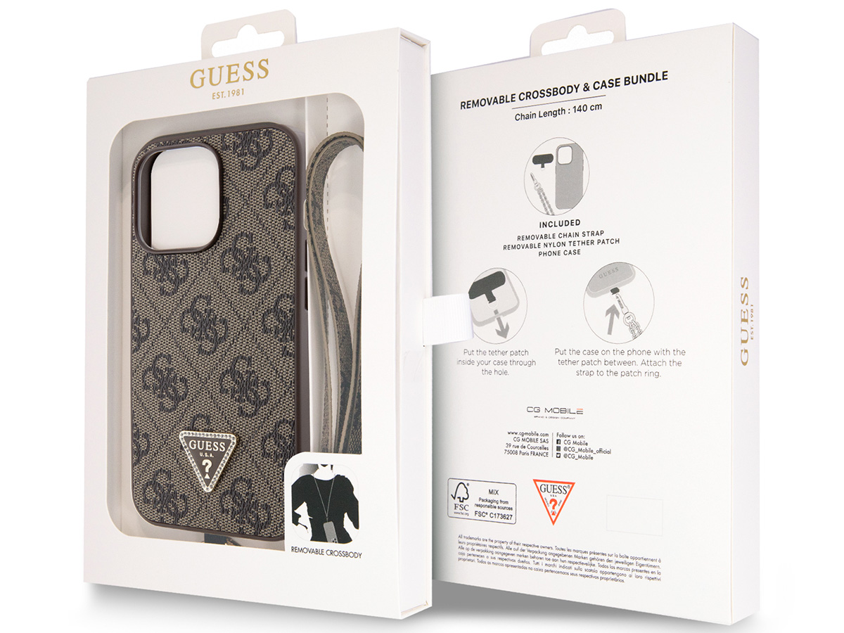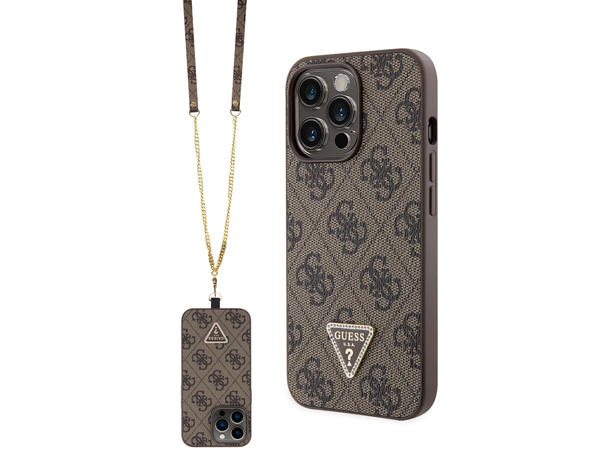 Guess 4G Monogram Necklace Case Bruin - iPhone 14 Pro Max hoesje