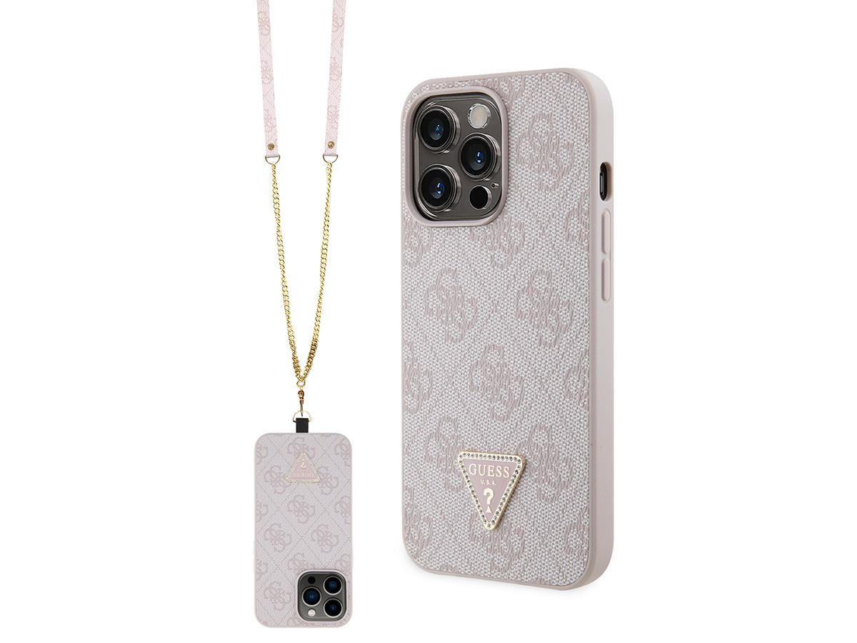 Guess 4G Monogram Necklace Case Roze - iPhone 14 Pro Max hoesje