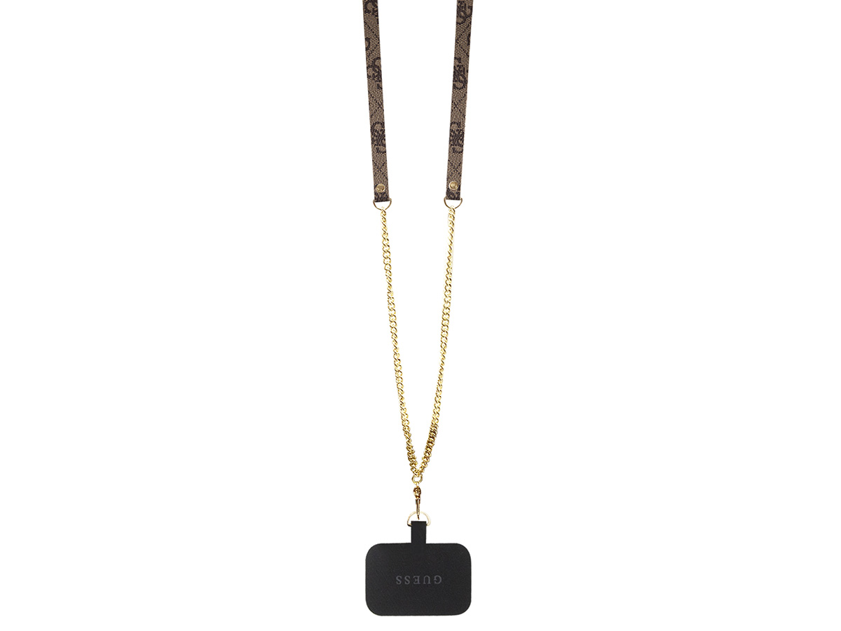 Guess 4G Monogram Crossbody Case Bruin - iPhone 15 Pro Max hoesje Nekkoord