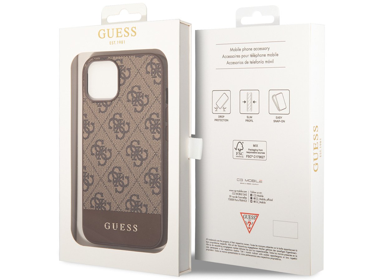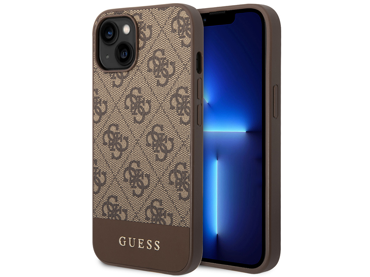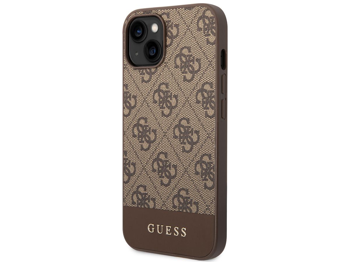 Guess 4G Monogram Stripe Case Bruin - iPhone 14 hoesje