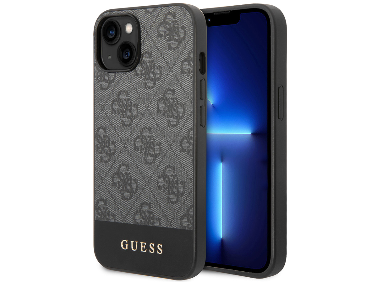Guess 4G Monogram Stripe Case Grijs - iPhone 14 Plus/15 Plus hoesje