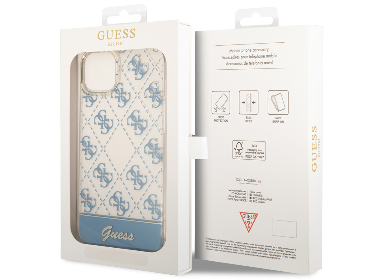 Guess 4G Monogram TPU Case Blauw - iPhone 14 hoesje