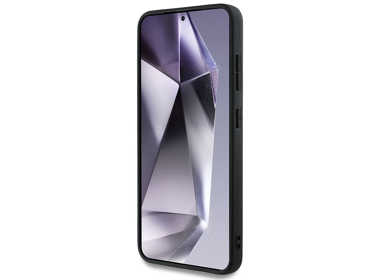 Dit originele Guess Samsung Galaxy S25+ hoesje is bekleed met hoogwaardig kunstleer en wordt gesierd door een groot goudkleurig 4G embleem tezamen met een goudkleurig Guess logo.
