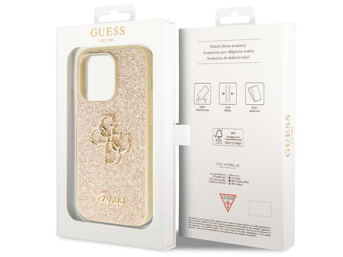 Guess Big 4G Glitter Case Goud - iPhone 14 Pro Max hoesje