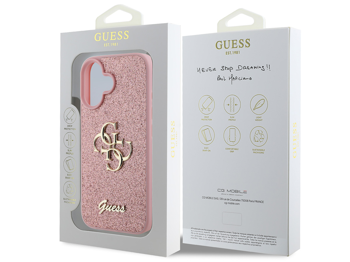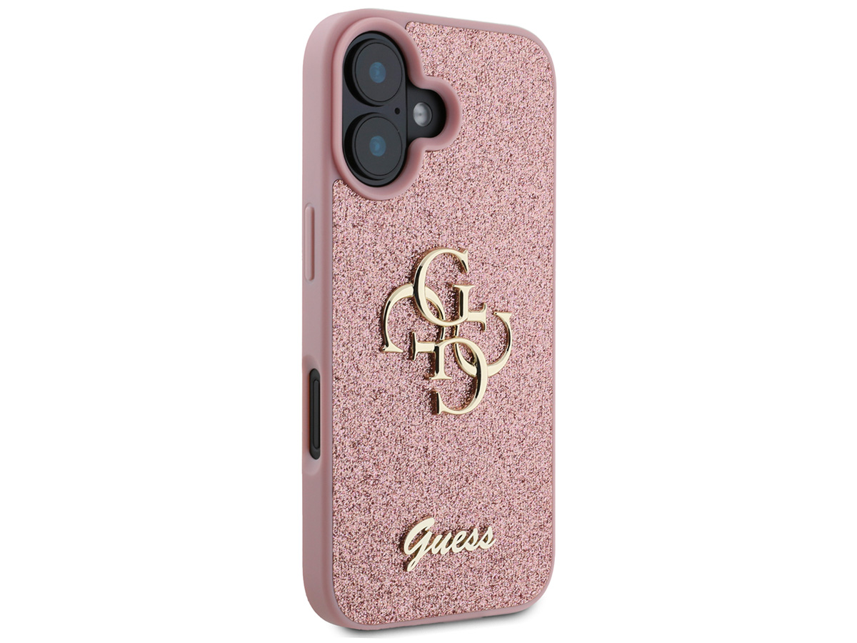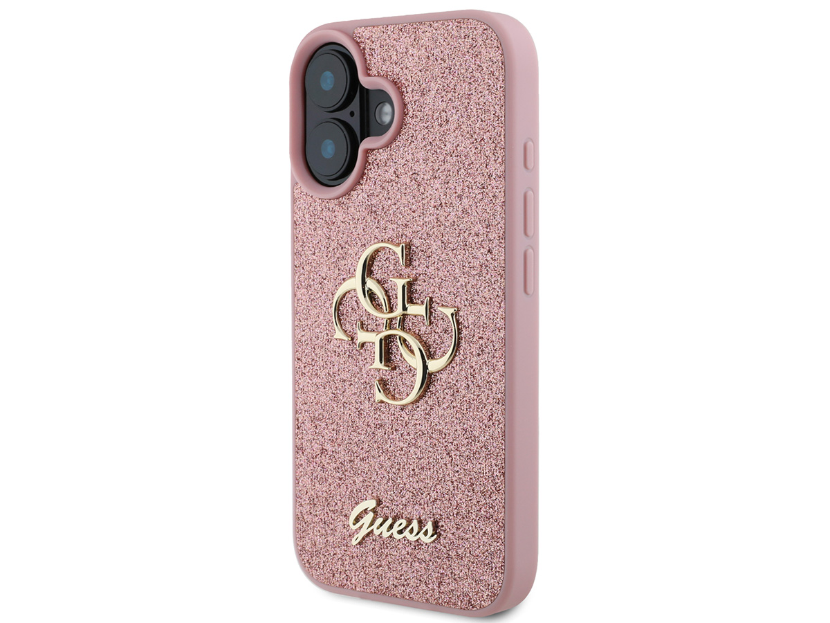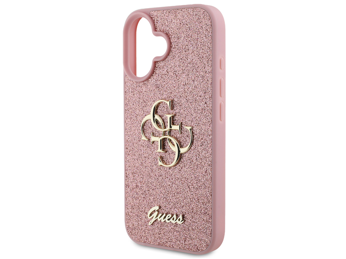 Guess Big 4G Glitter Case Roze - iPhone 16 Plus hoesje