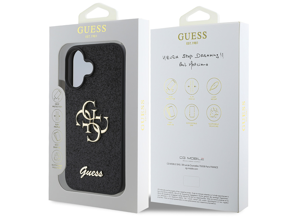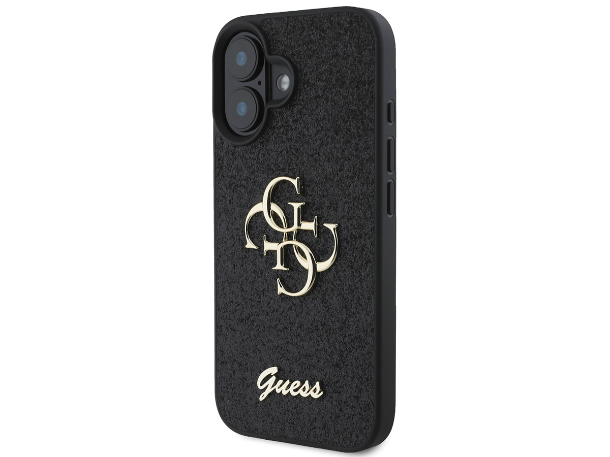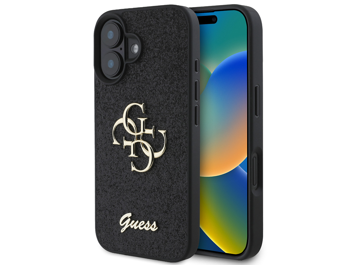 Guess Big 4G Glitter Case Zwart - iPhone 16 Plus hoesje