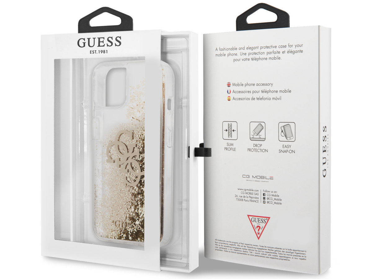 Guess Big 4G Liquid Glitter Case Goud - iPhone 13 Mini hoesje