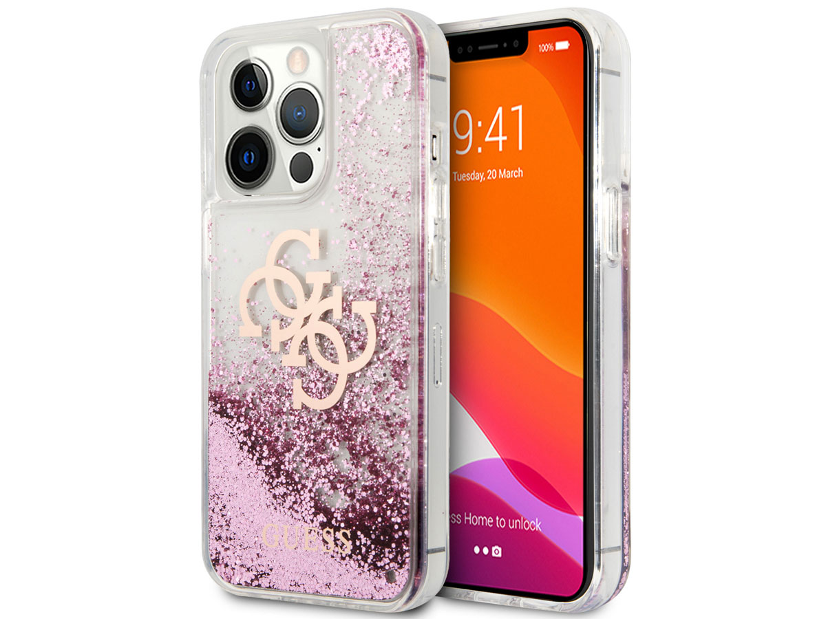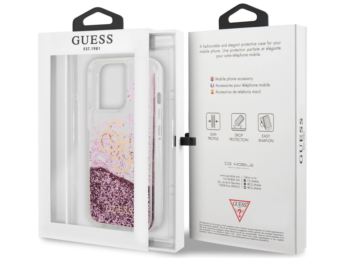 Guess Big 4G Liquid Glitter Case Roze - iPhone 13 Pro Max hoesje