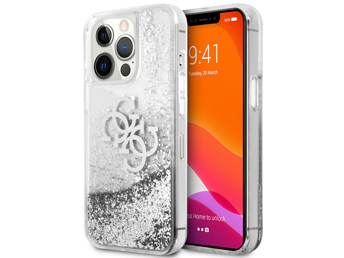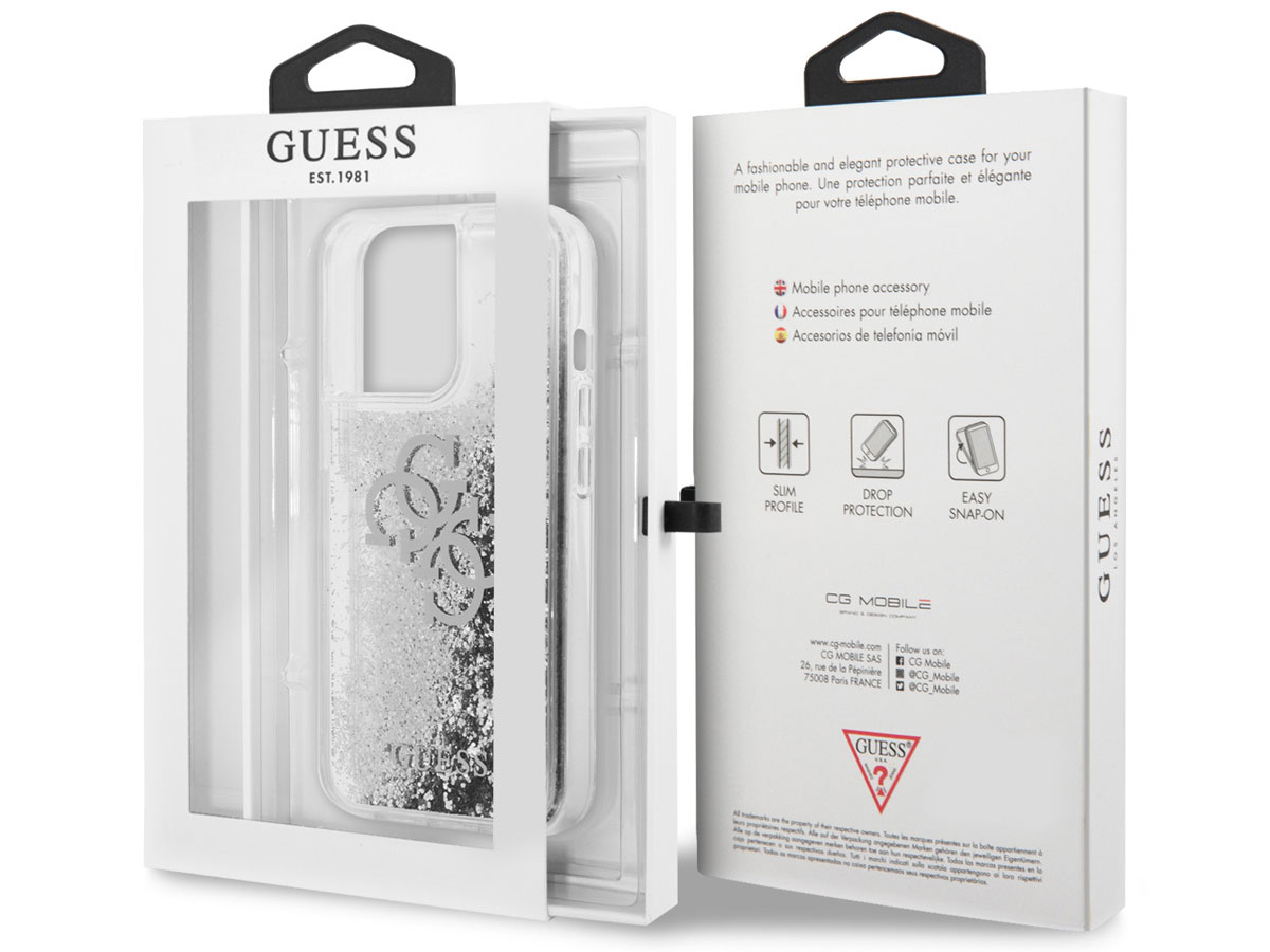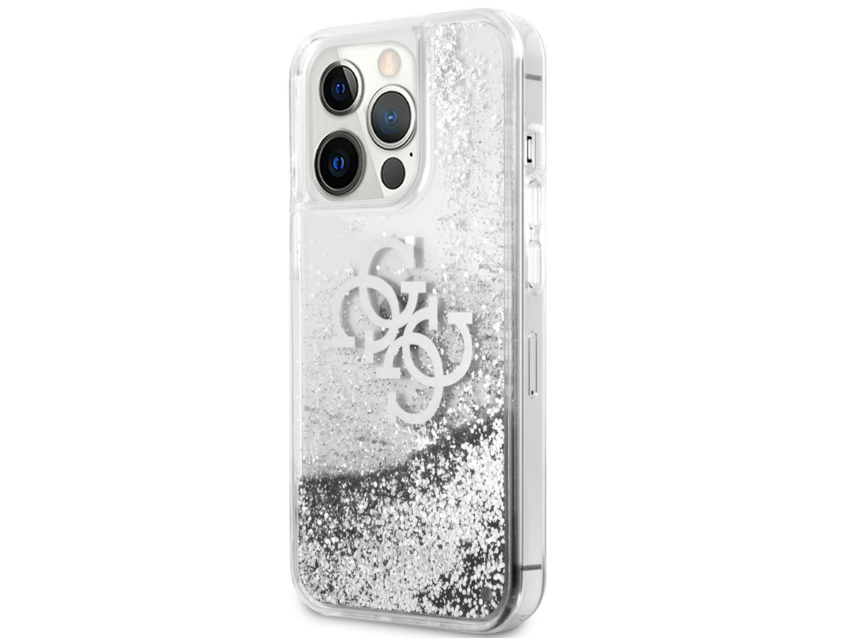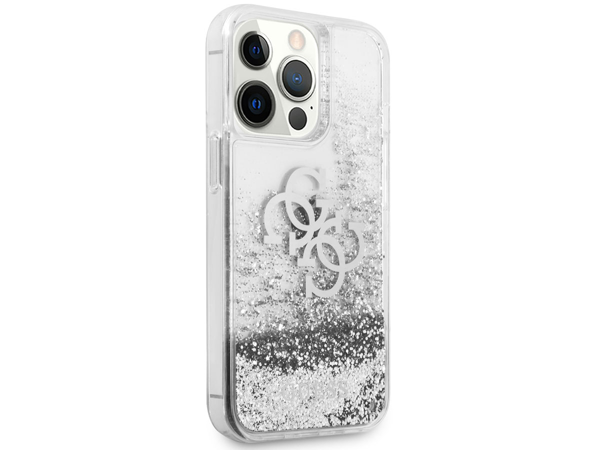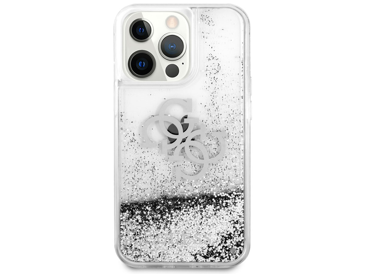 Guess Big 4G Liquid Glitter Case Zilver - iPhone 13 Pro Max hoesje