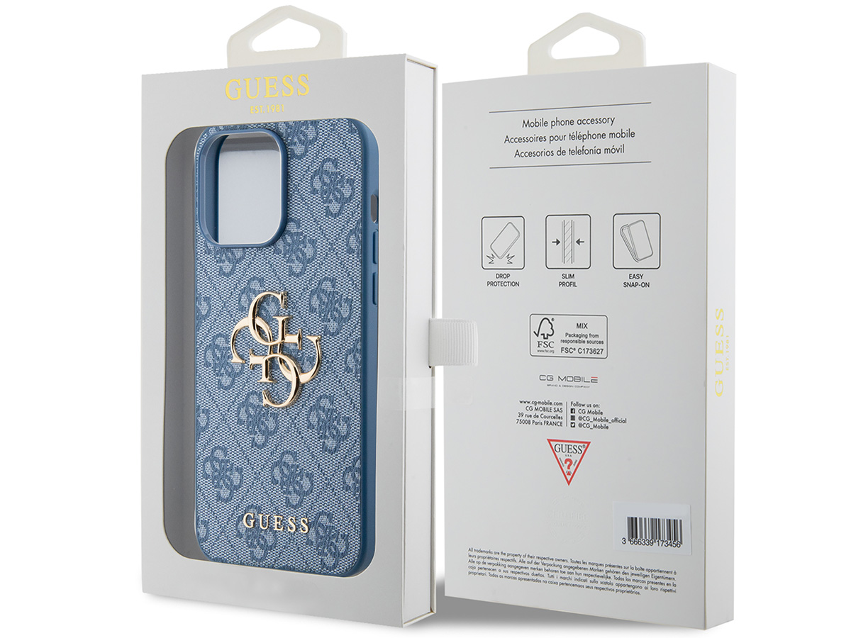 Guess Big 4G Monogram Case Blauw - iPhone 15 Pro hoesje
