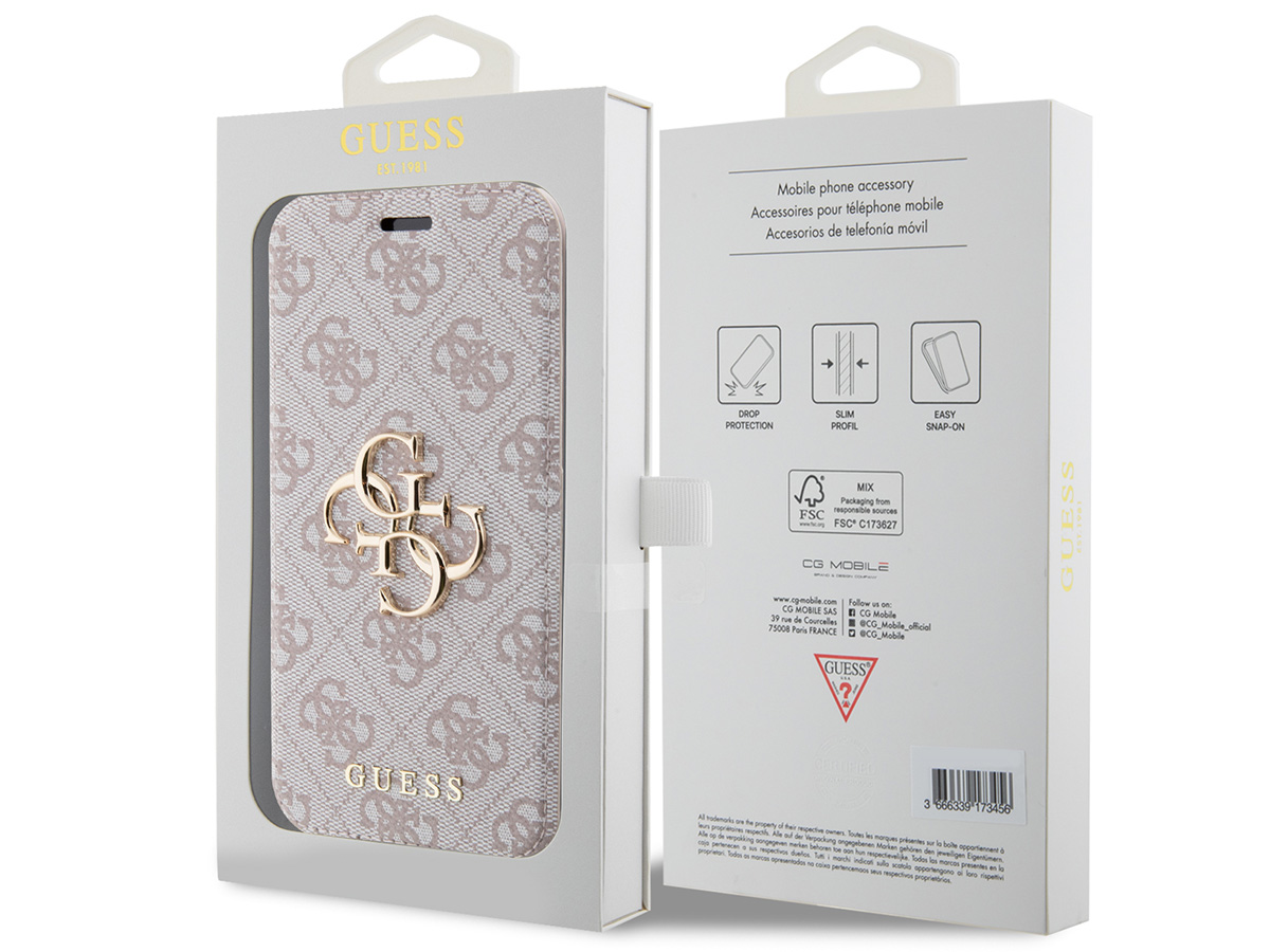 Guess Big 4G Monogram Bookcase Roze - iPhone 15 hoesje