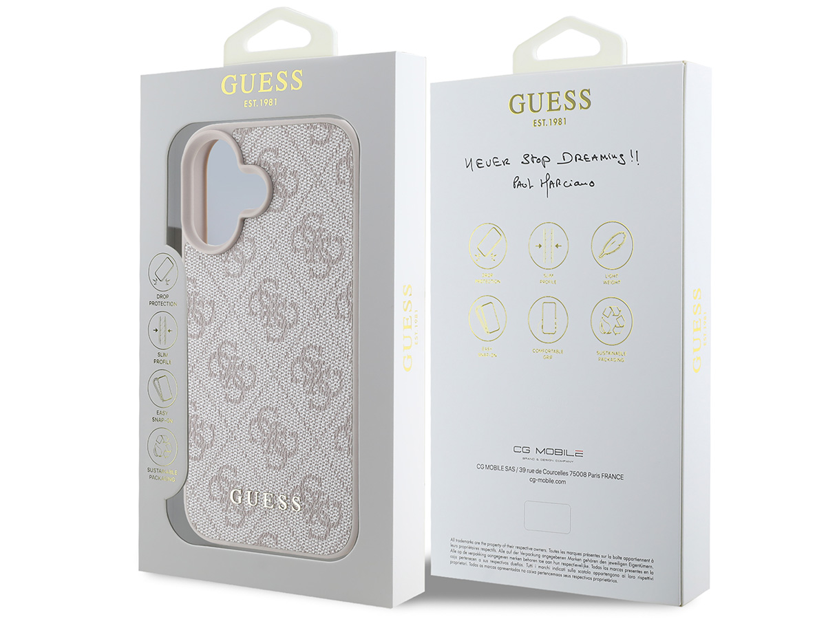 Guess Classic 4G Monogram Case Roze - iPhone 16 Plus hoesje