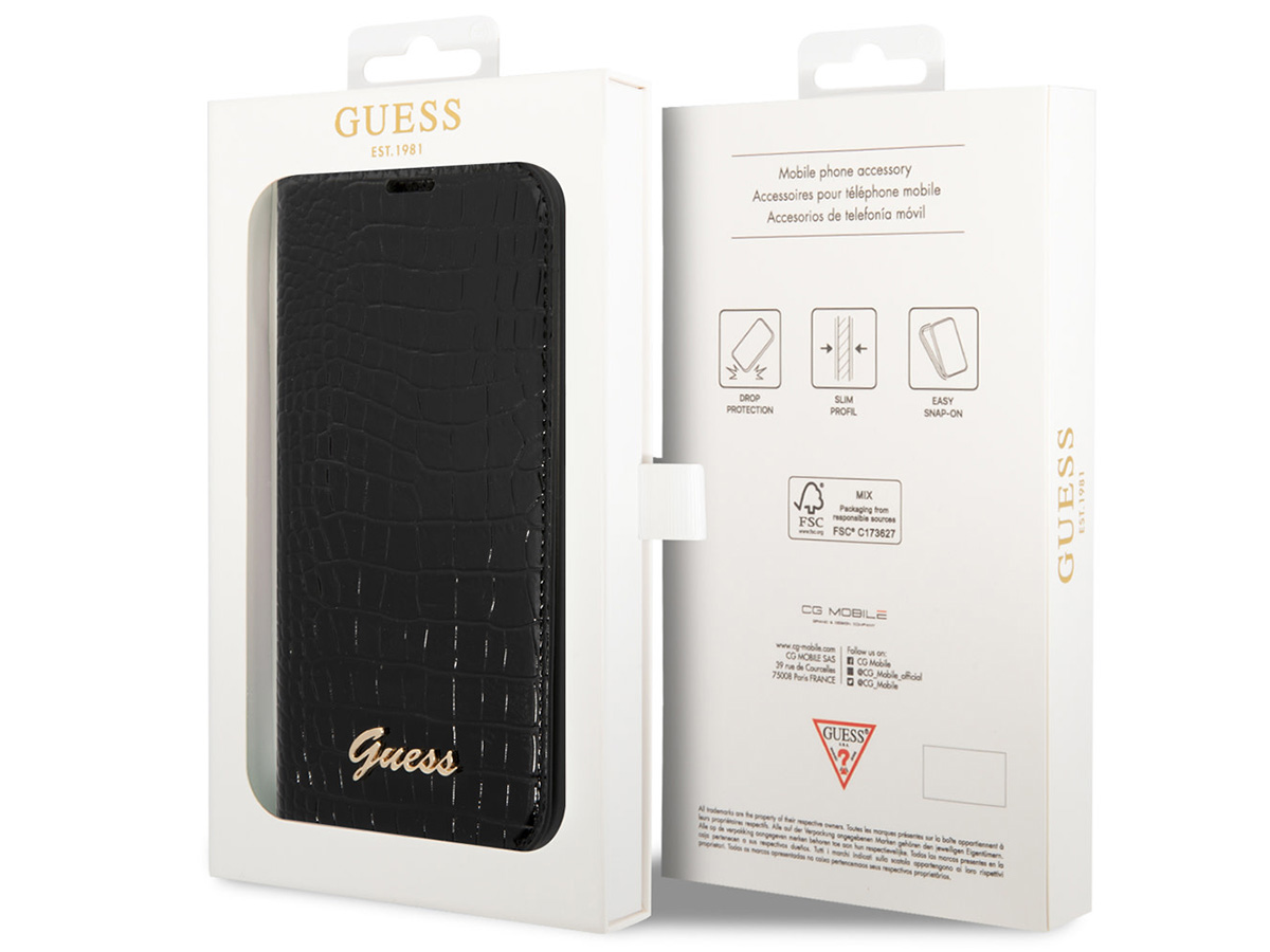 Guess Croco Folio Wallet Case Zwart - iPhone 14 Pro Max hoesje