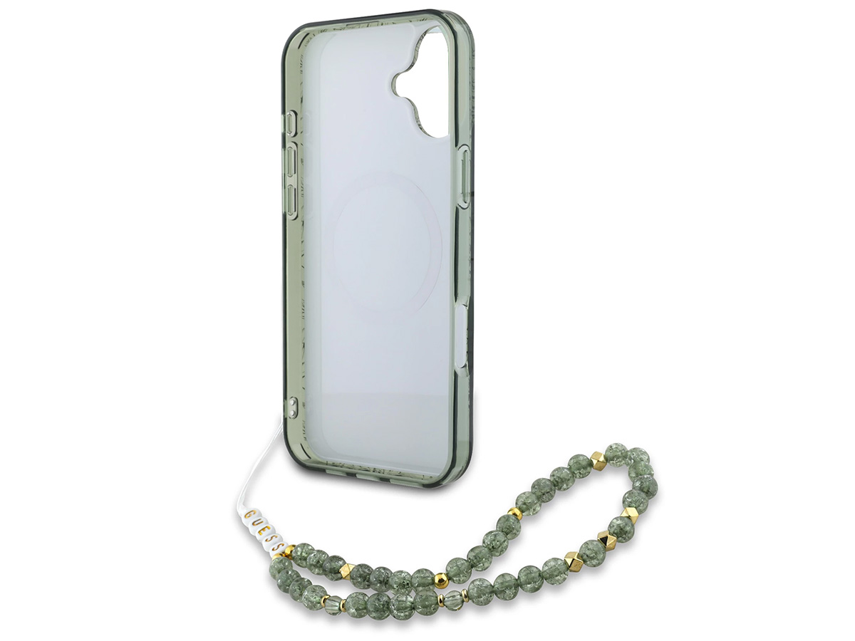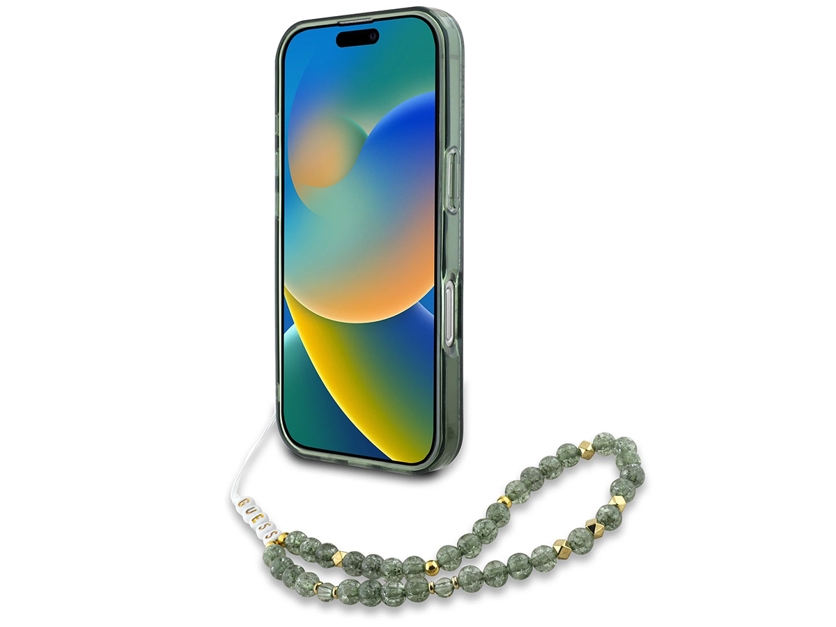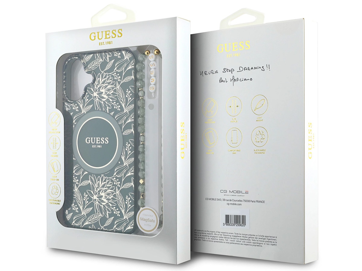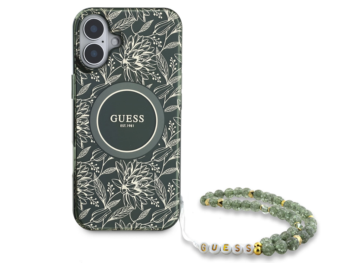 Guess Floral Wristlet Charm Case Groen - iPhone 16 Plus hoesje met Polsbandje