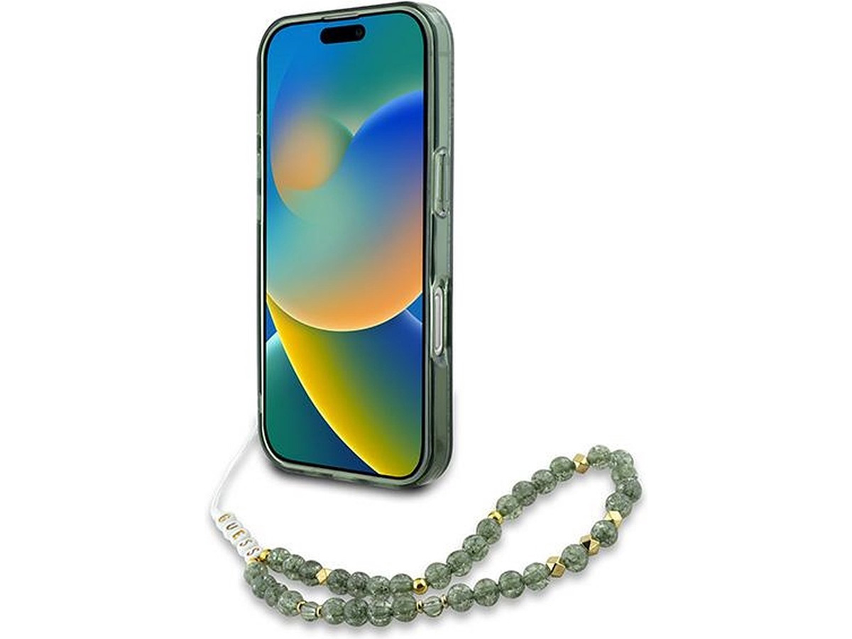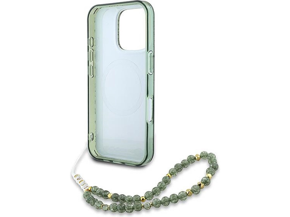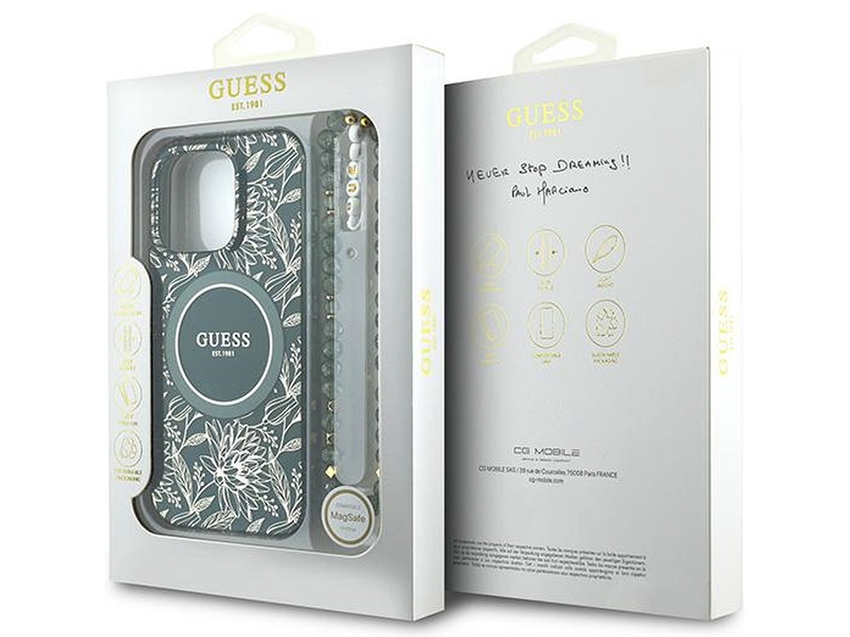 Guess Floral Wristlet Charm Case Groen - iPhone 16 Pro hoesje met Polsbandje