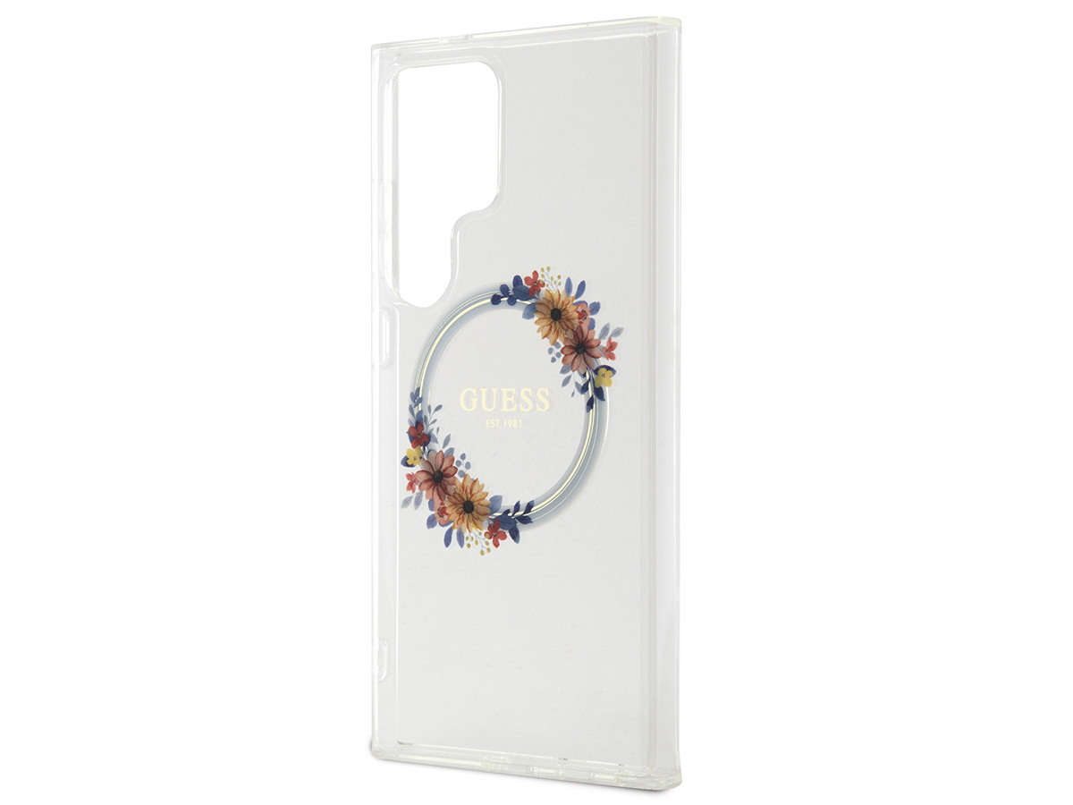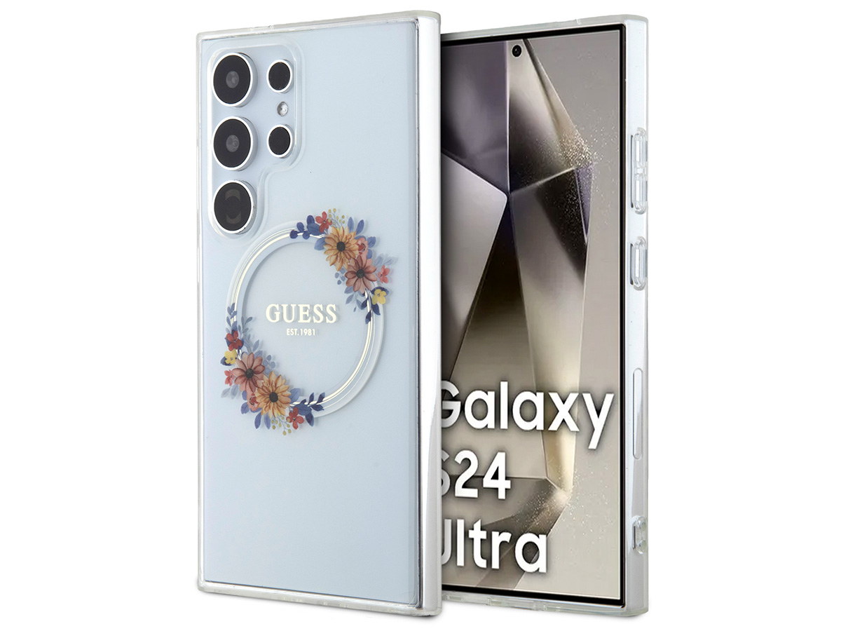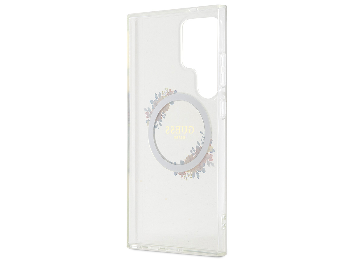 Guess Flower Wreath MagSafe Case Clear - Samsung Galaxy S24 Ultra hoesje