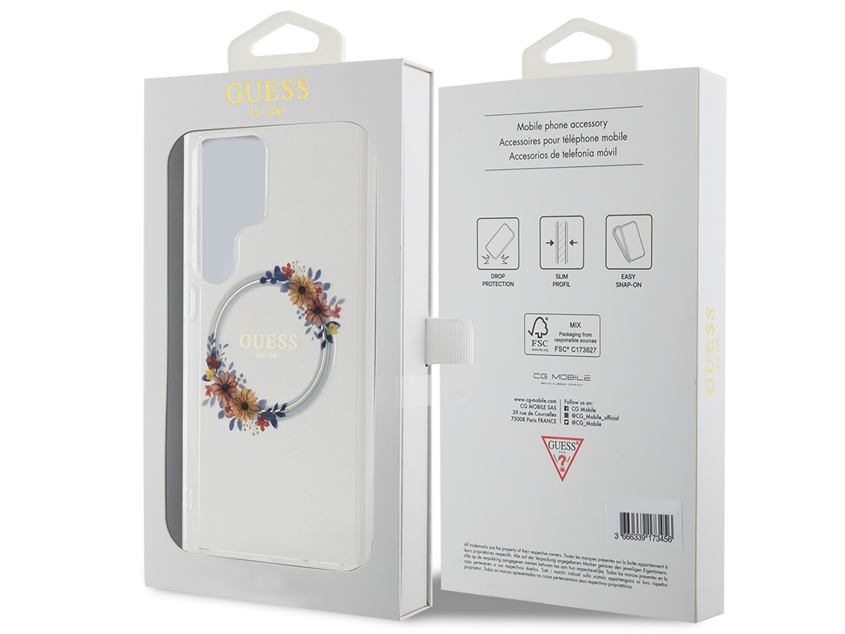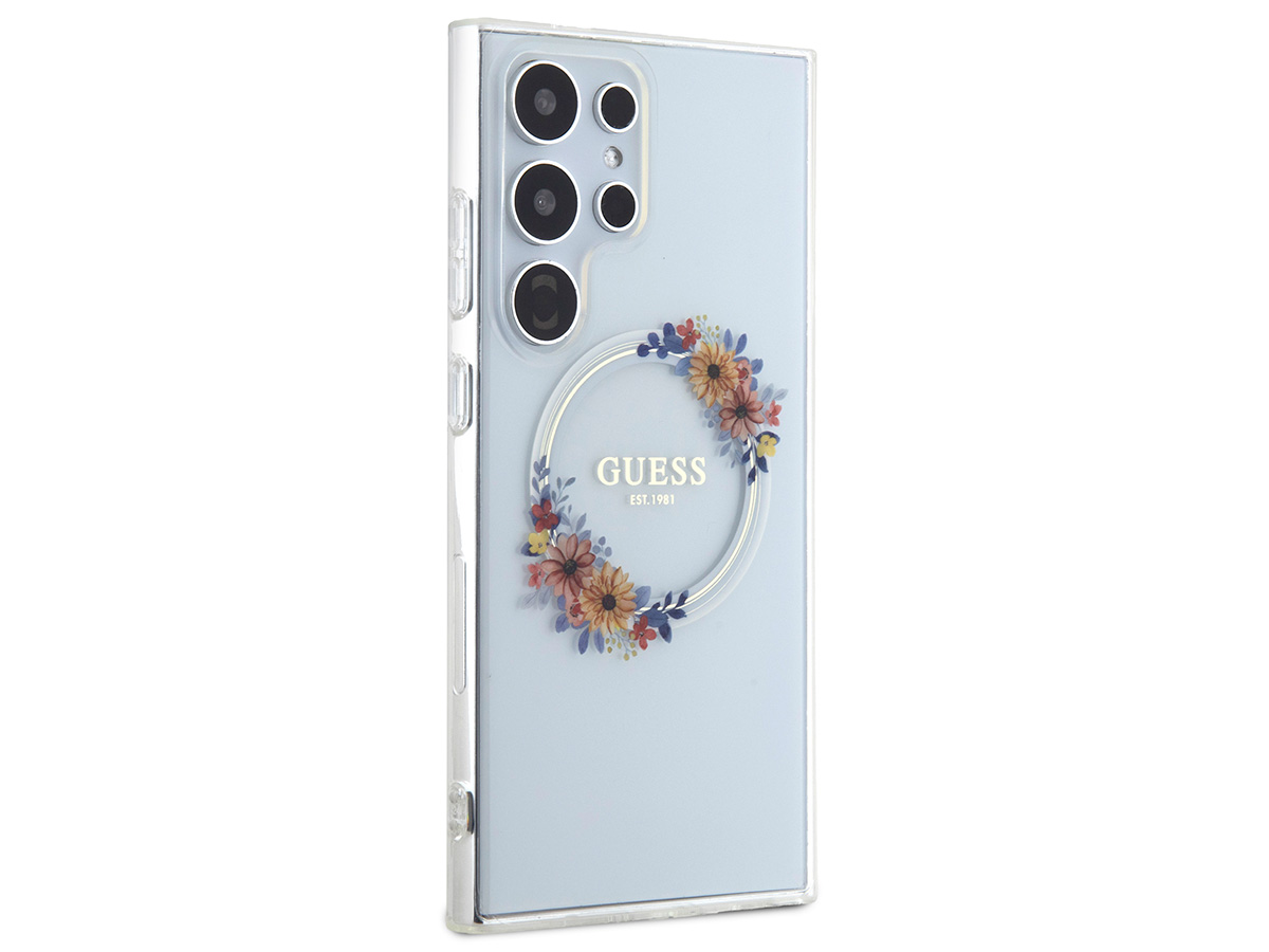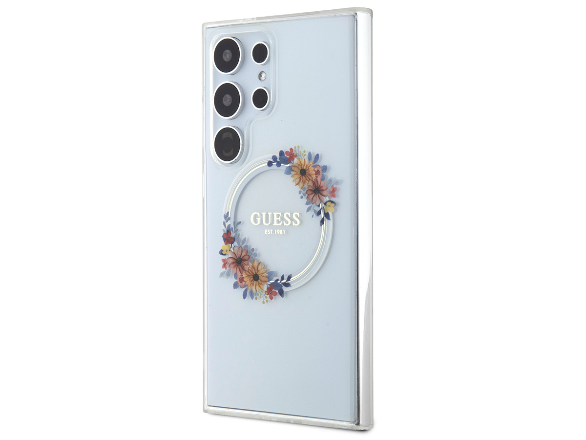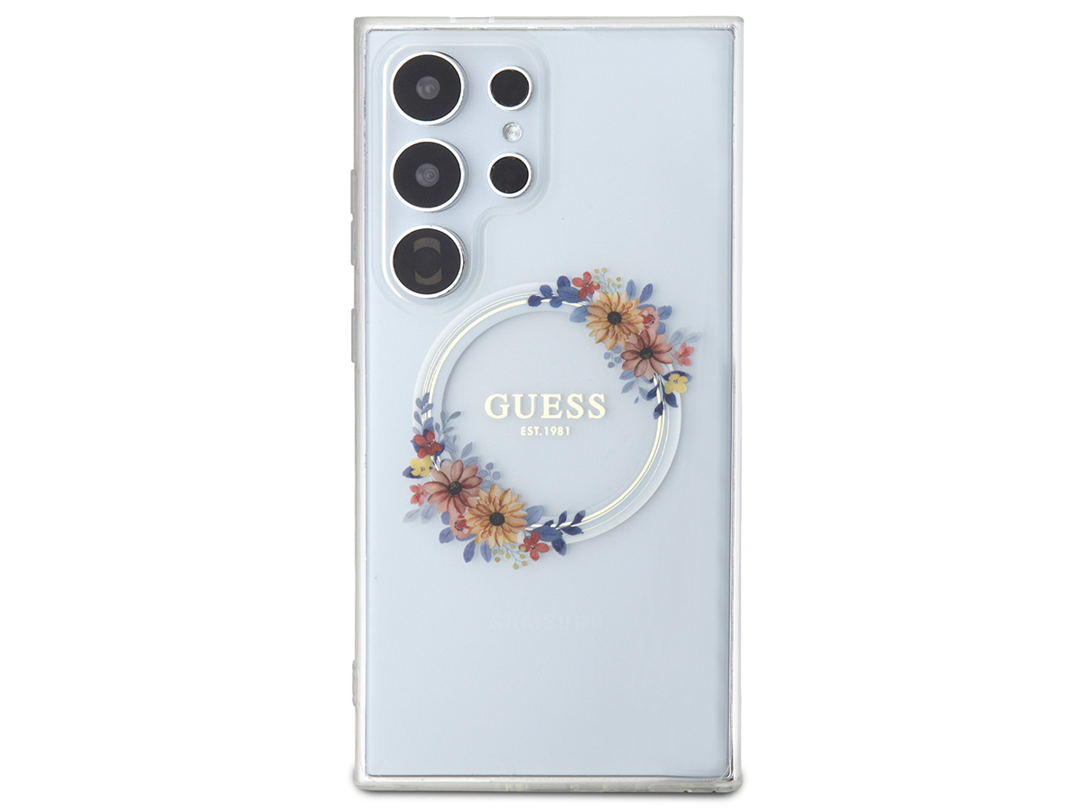 Guess Flower Wreath MagSafe Case Clear - Samsung Galaxy S24 Ultra hoesje