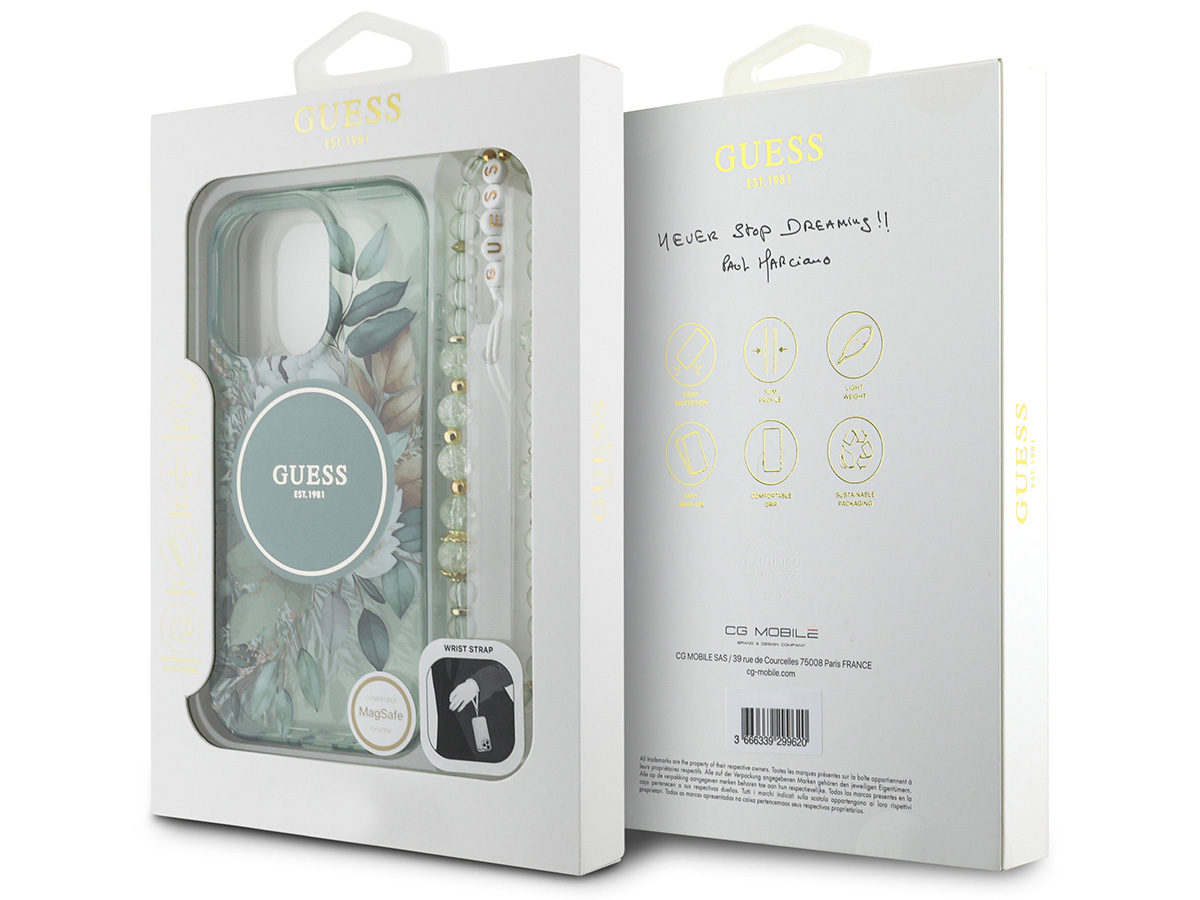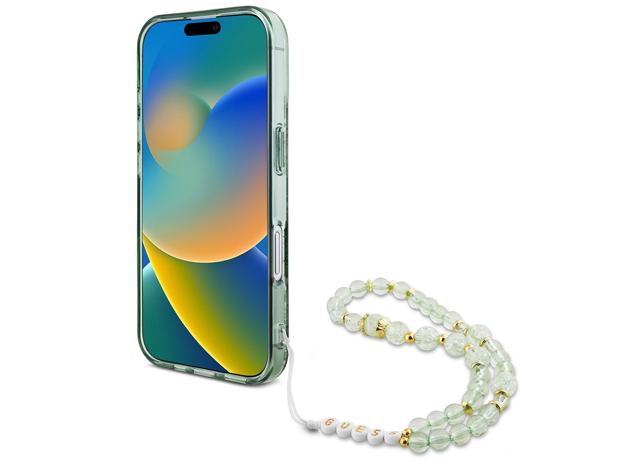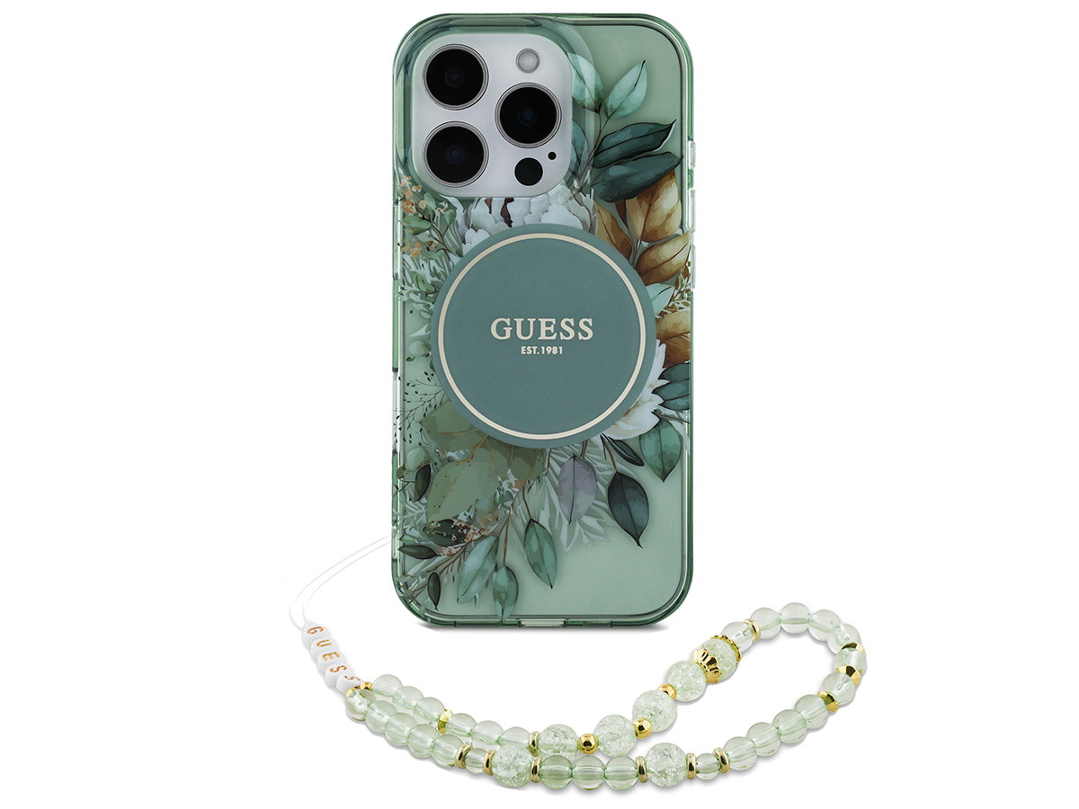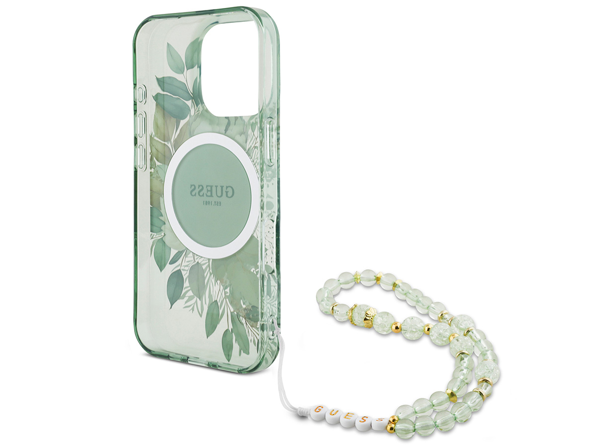Guess Flower Wristlet Charm Case Groen - iPhone 16 Pro Max hoesje met Polsbandje
