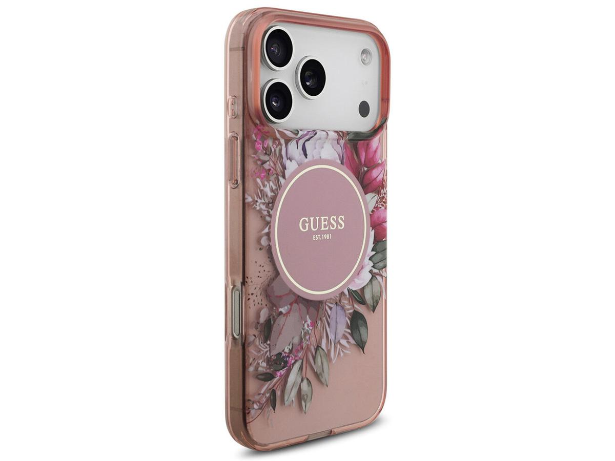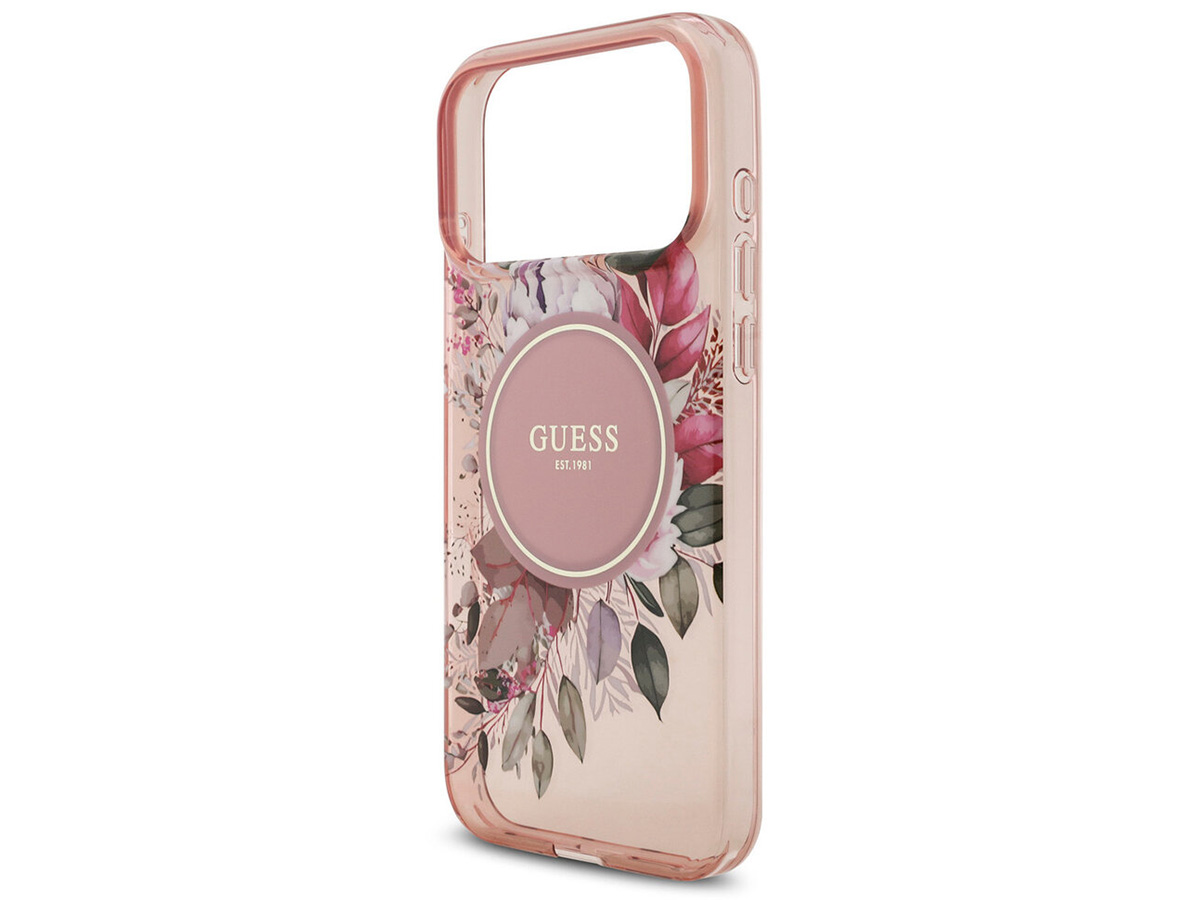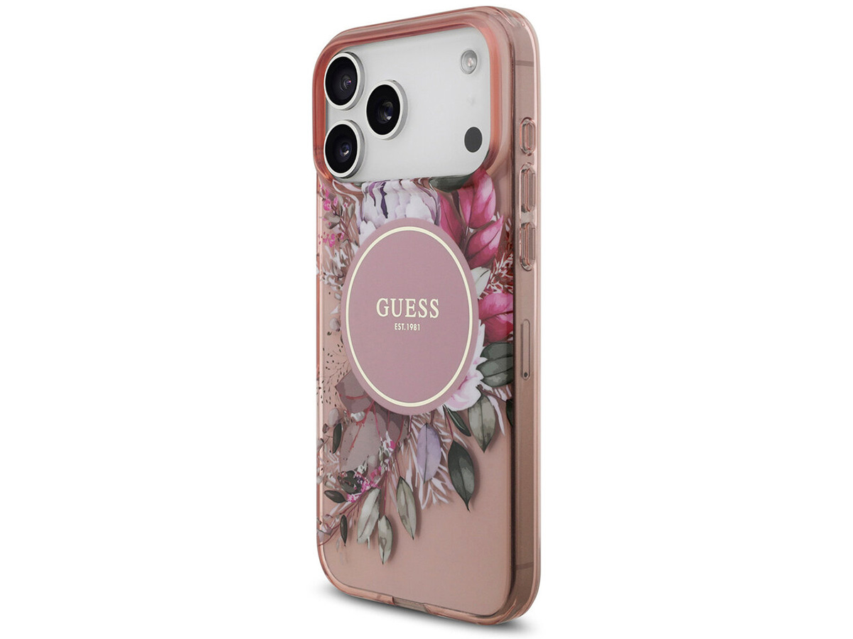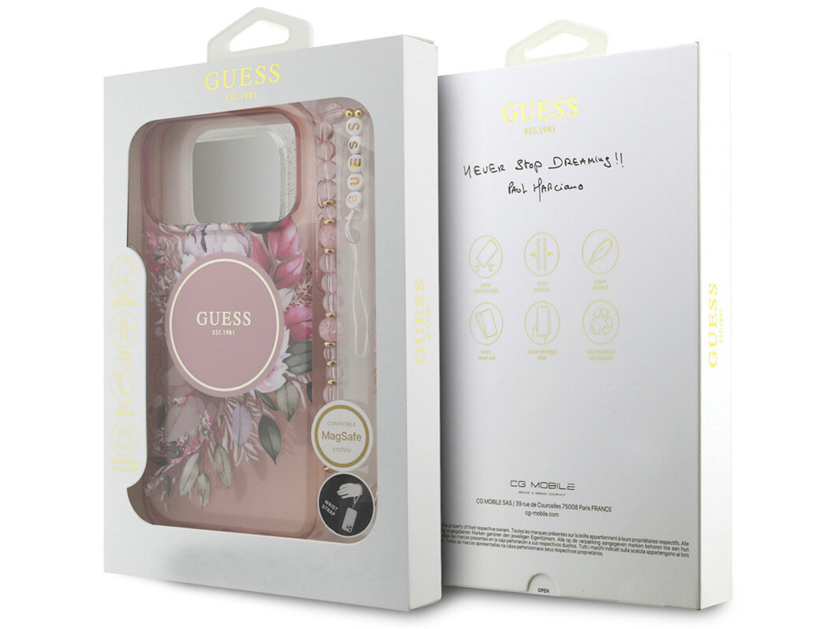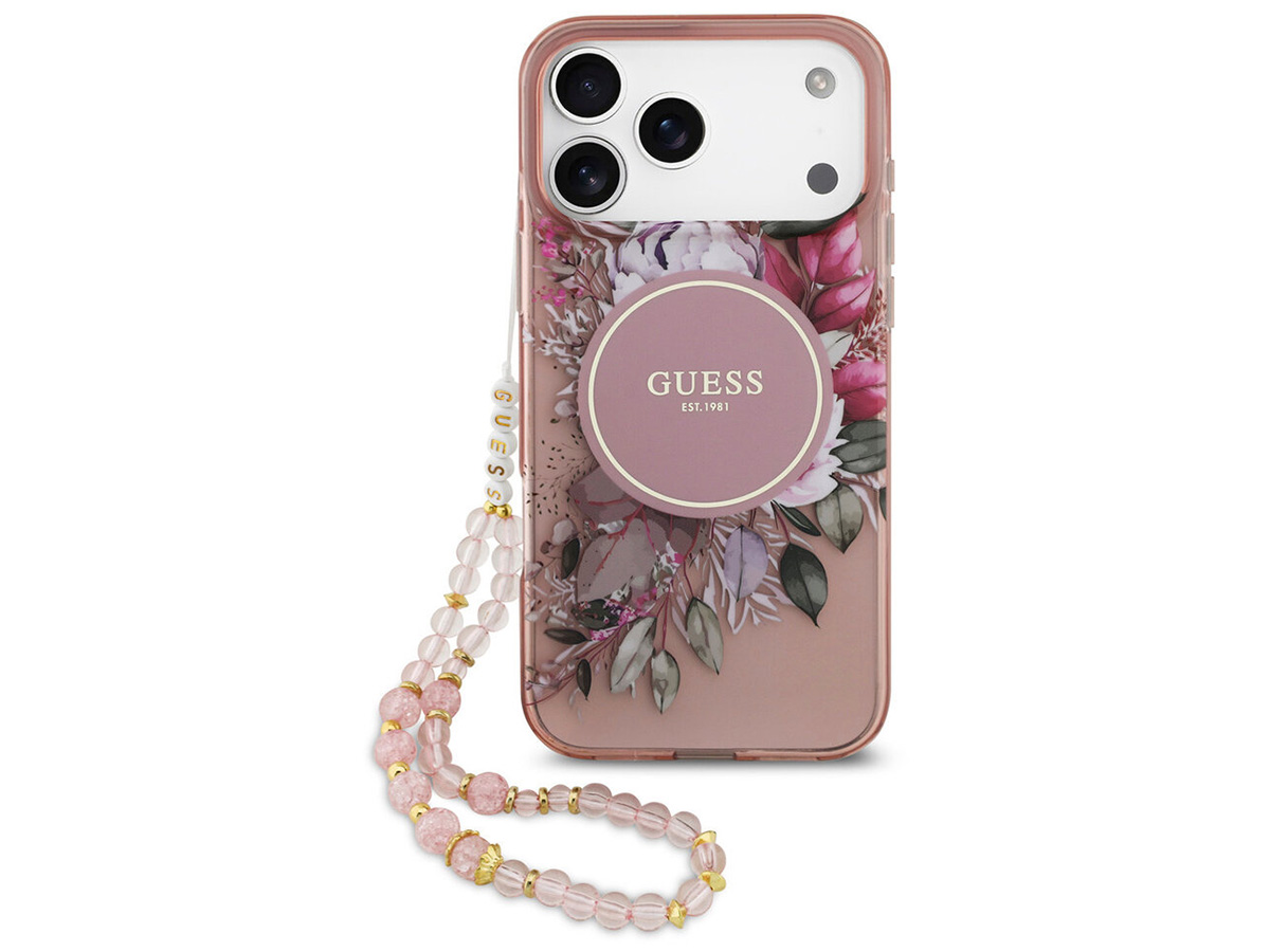 Guess Flower Wristlet Charm Case Roze - iPhone 17 Pro hoesje met Polsbandje