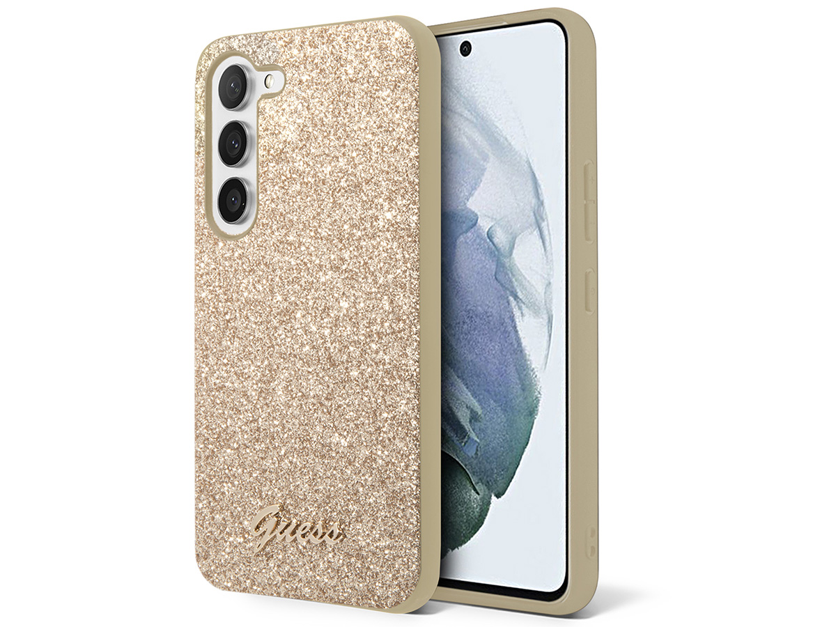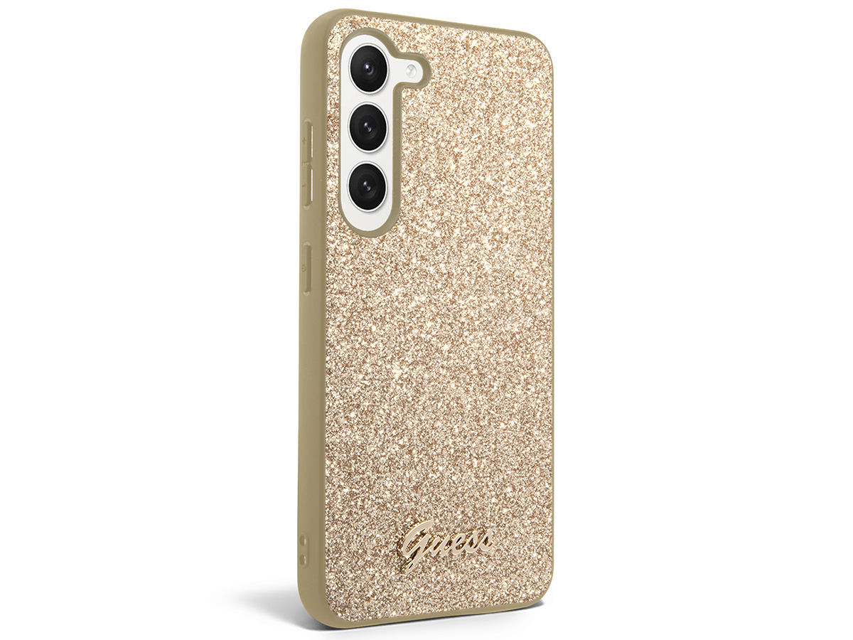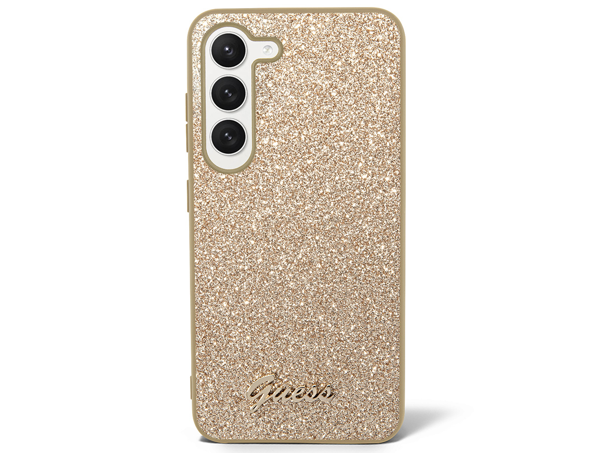 Guess Glitter Script Case Goud - Samsung Galaxy S24 hoesje