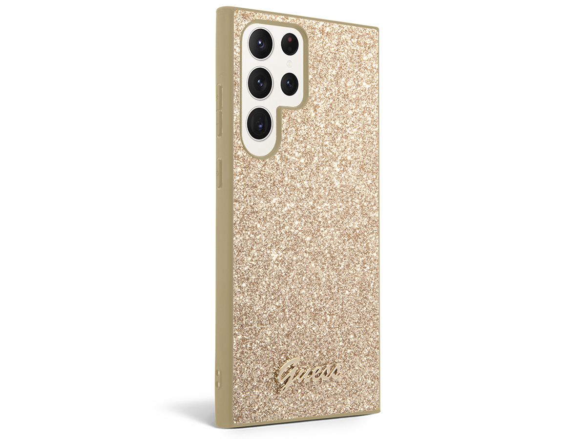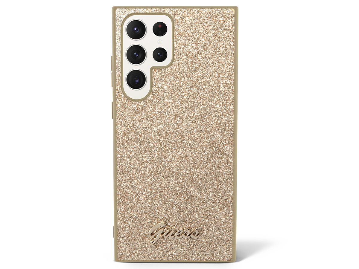 Guess Glitter Script Case Goud - Samsung Galaxy S24 Ultra hoesje