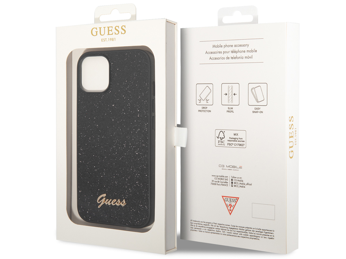 Guess Glitter TPU Case Zwart - iPhone 14 hoesje