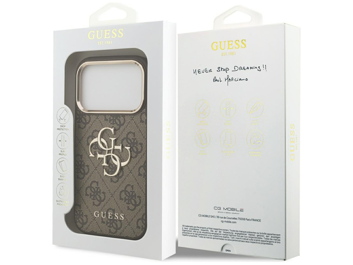 Guess Big 4G Monogram Gold Case Bruin - iPhone 17 Pro Max hoesje