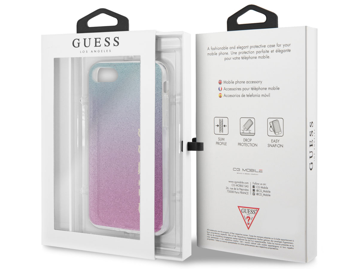 Guess Glitter TPU Case Pink Blue - iPhone SE / 8 / 7 / 6 hoesje