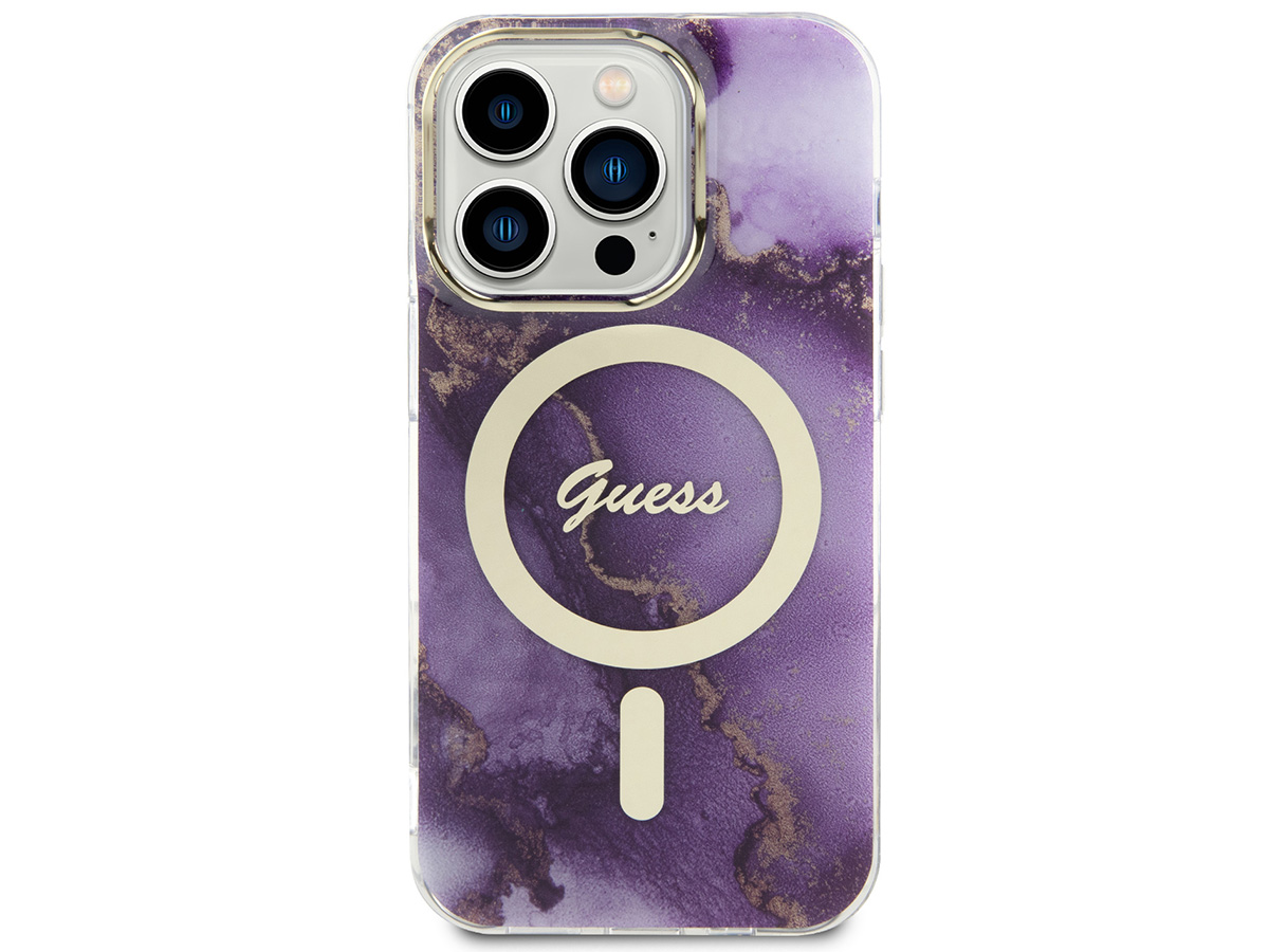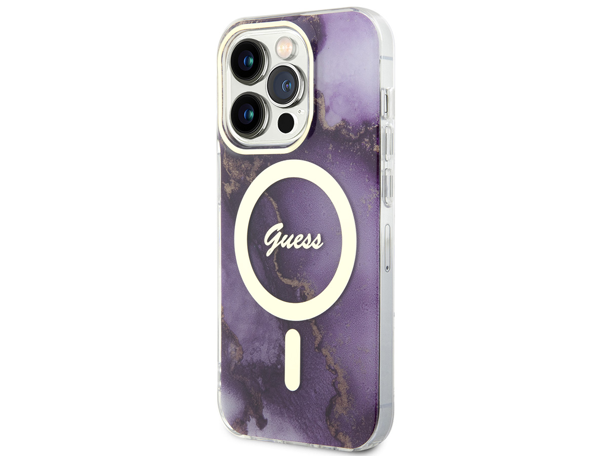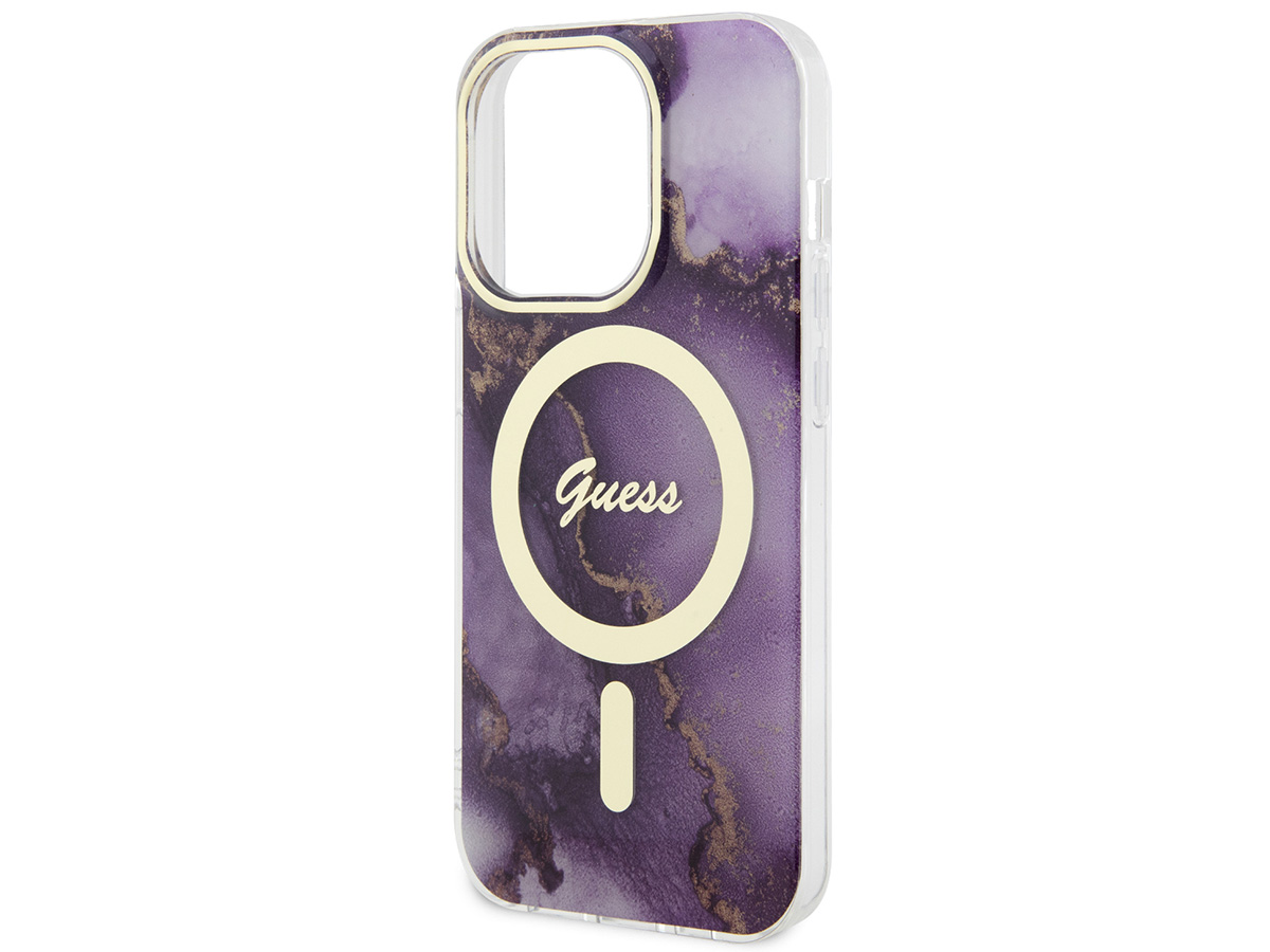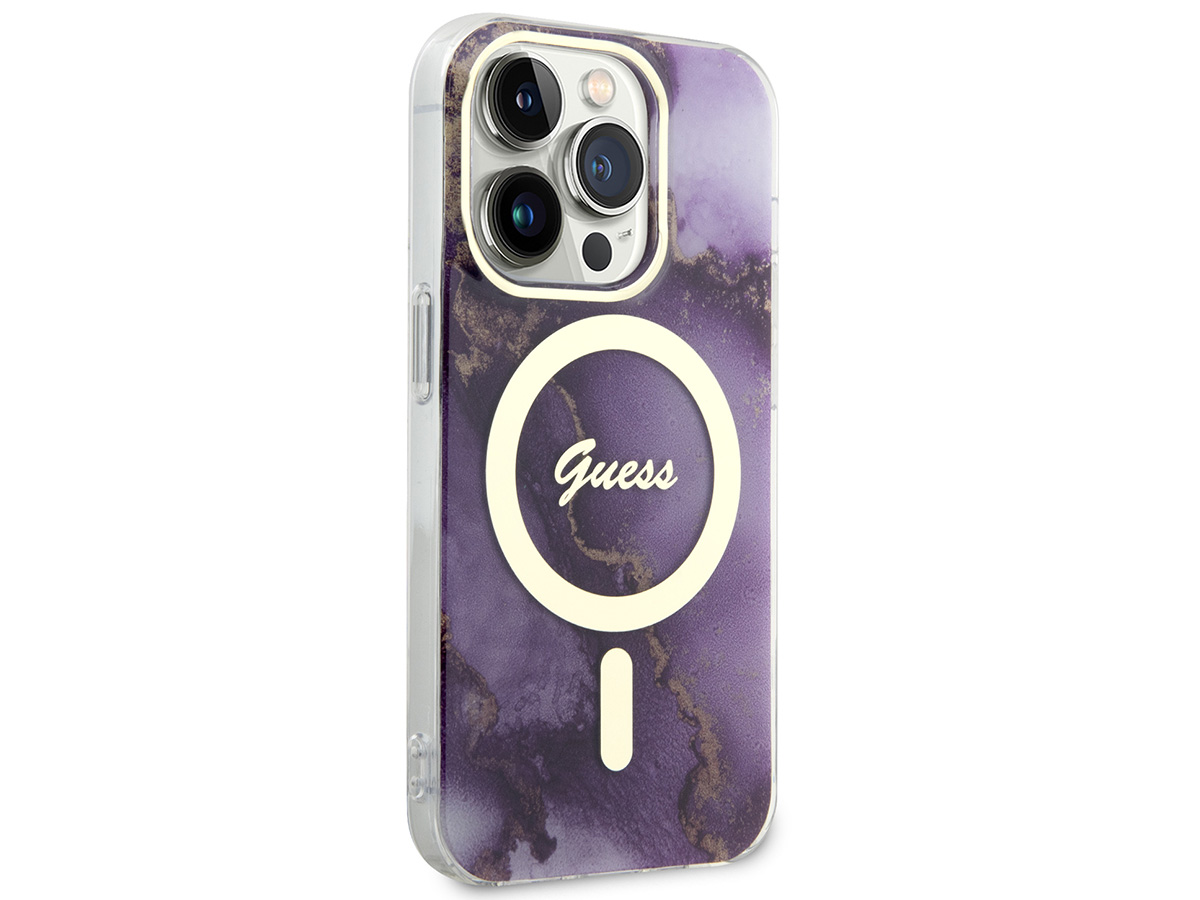 Guess Marble MagSafe TPU Case Paars - iPhone 14 Pro Max hoesje