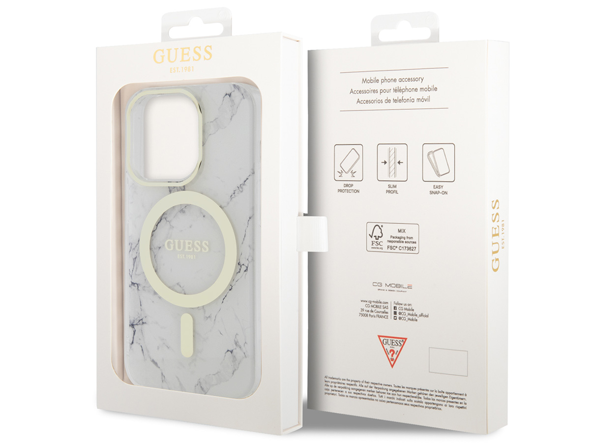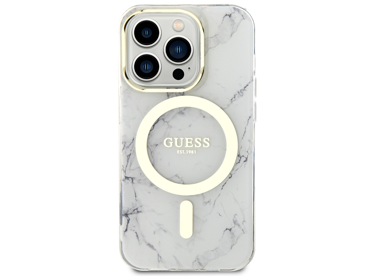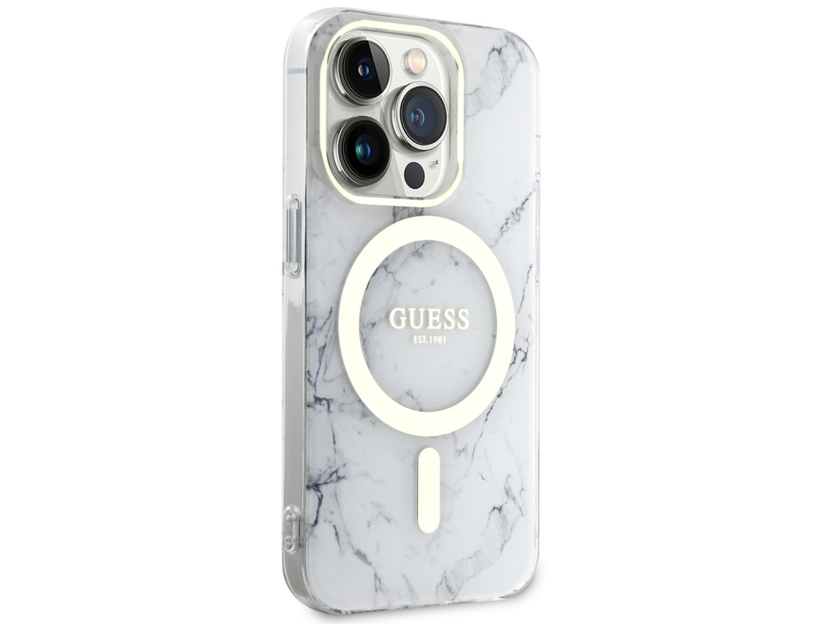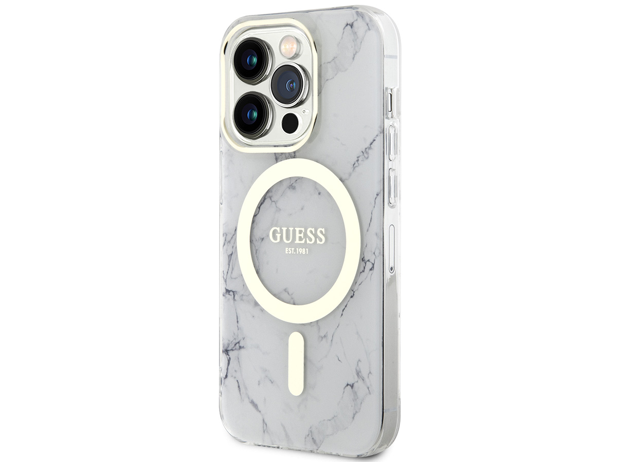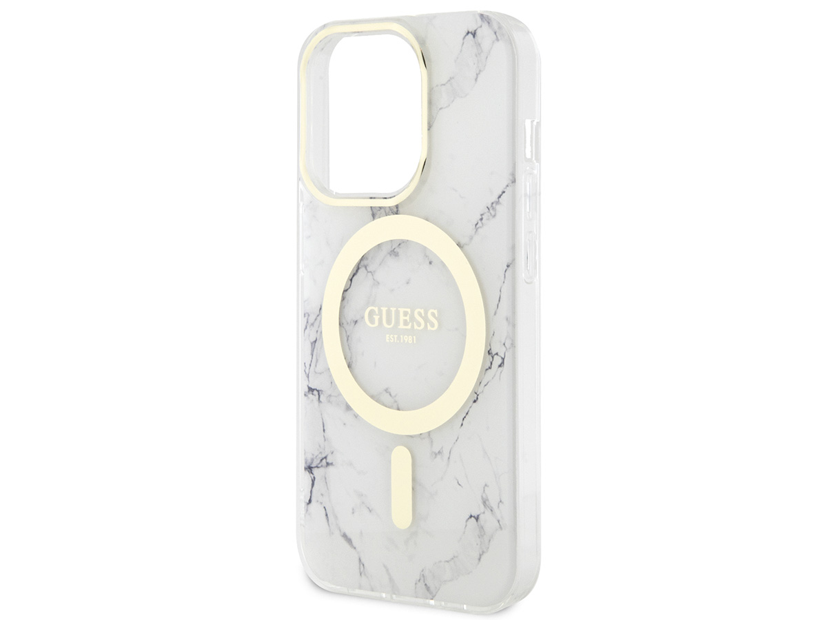 Guess Marble MagSafe TPU Case Wit - iPhone 14 Pro Max hoesje