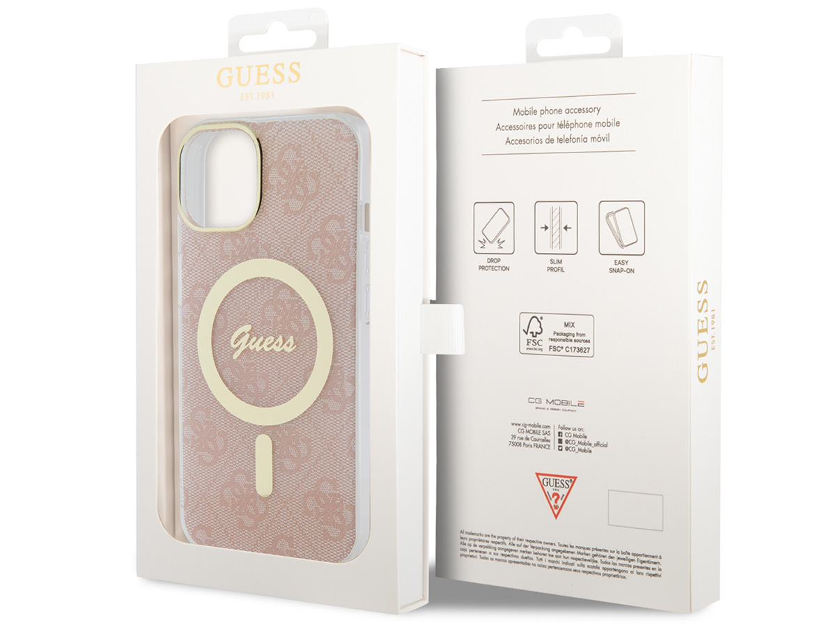 Guess Monogram MagSafe TPU Case Roze - iPhone 15 hoesje