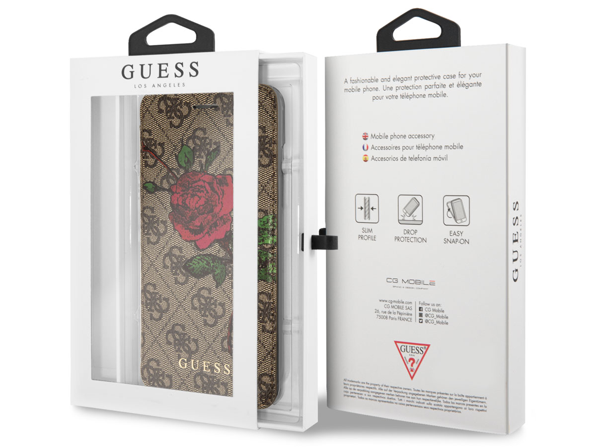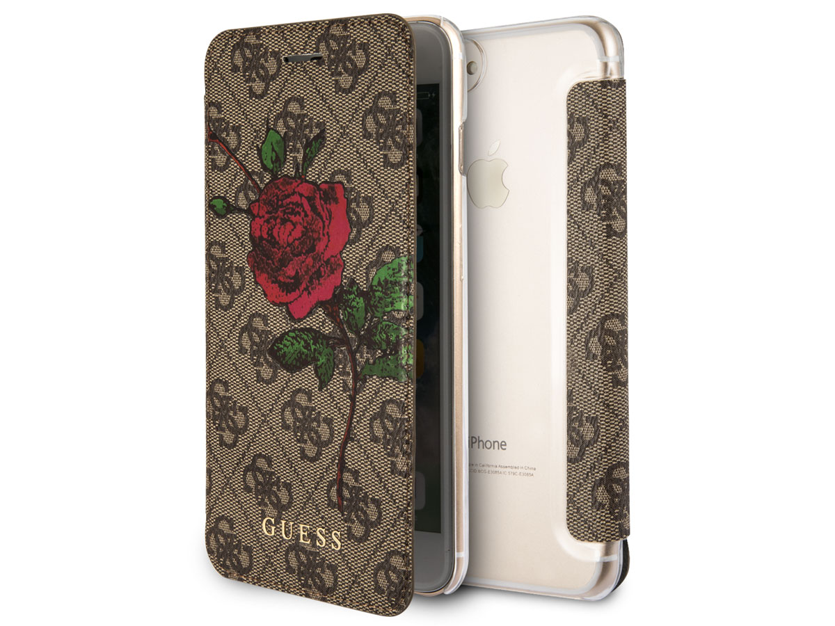 Guess Monogram Rose Book Bruin - iPhone 8+/7+/6+ hoesje