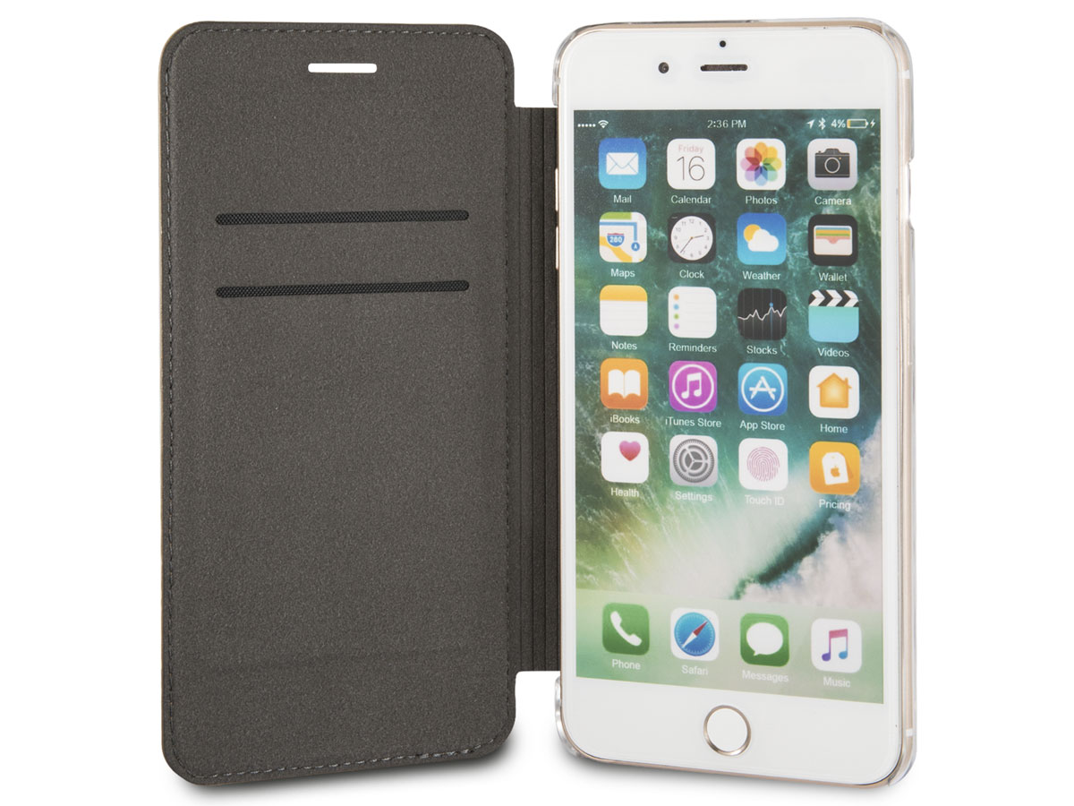 Binnenin het iPhone 8+/7+/6+ hoesje van Guess vindt u twee vakjes voor pasjes, waarmee u de belangrijkste altijd direct bij de hand heeft.