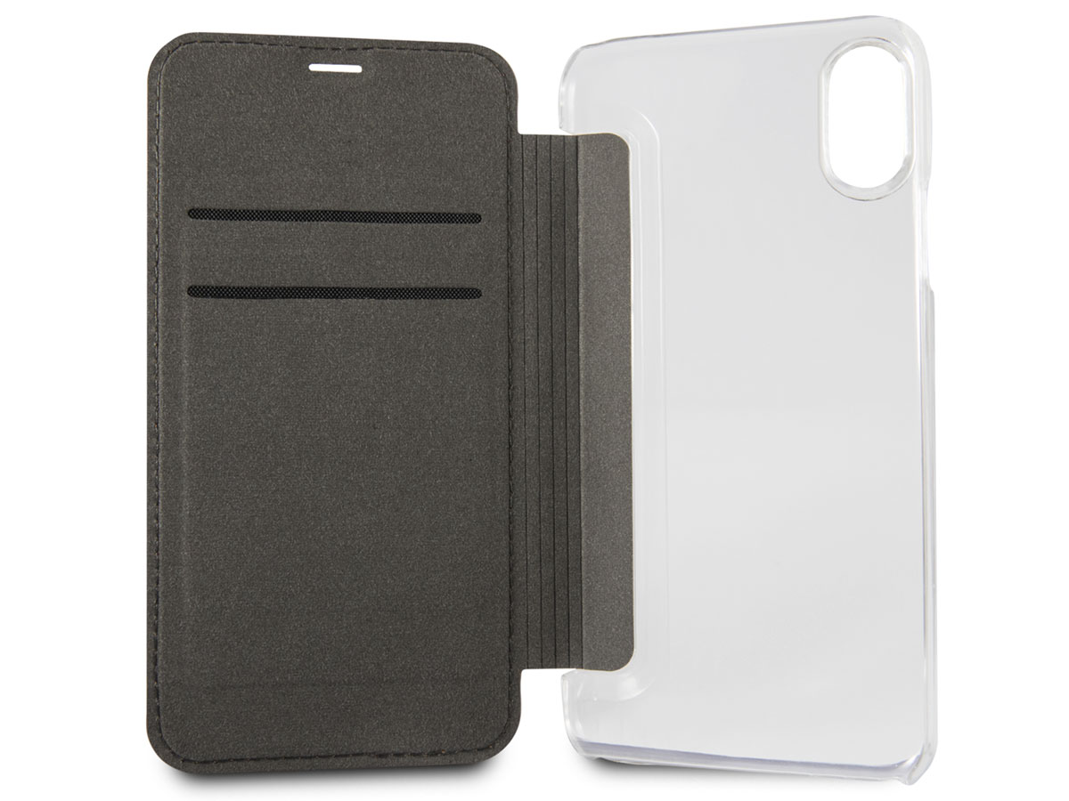 Extra functionaliteit is er in de vorm van twee opbergvakjes binnenin het iPhone X/Xs hoesje. Hierin bergt u eenvoudig uw belangrijkste pasjes op, zodat u deze altijd onder handbereik in uw Guess case heeft.