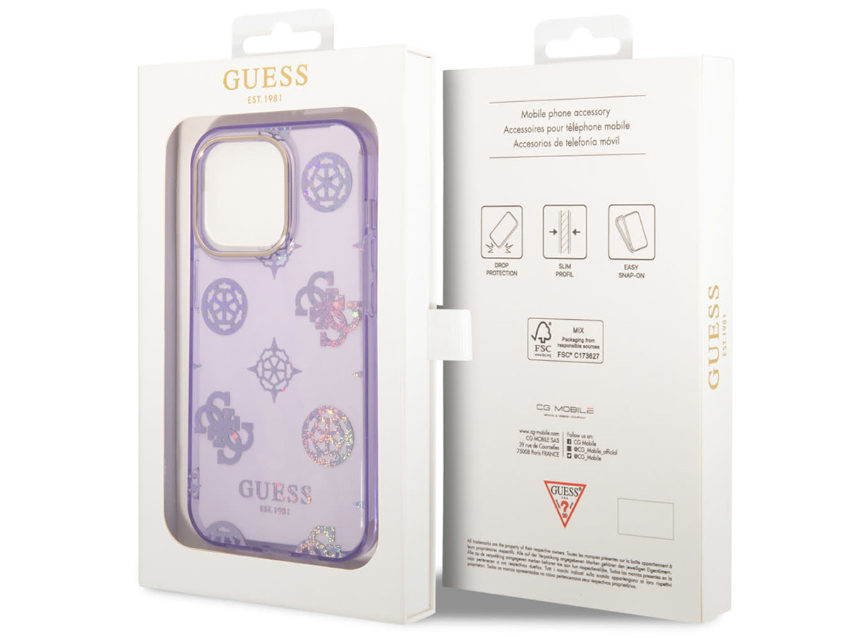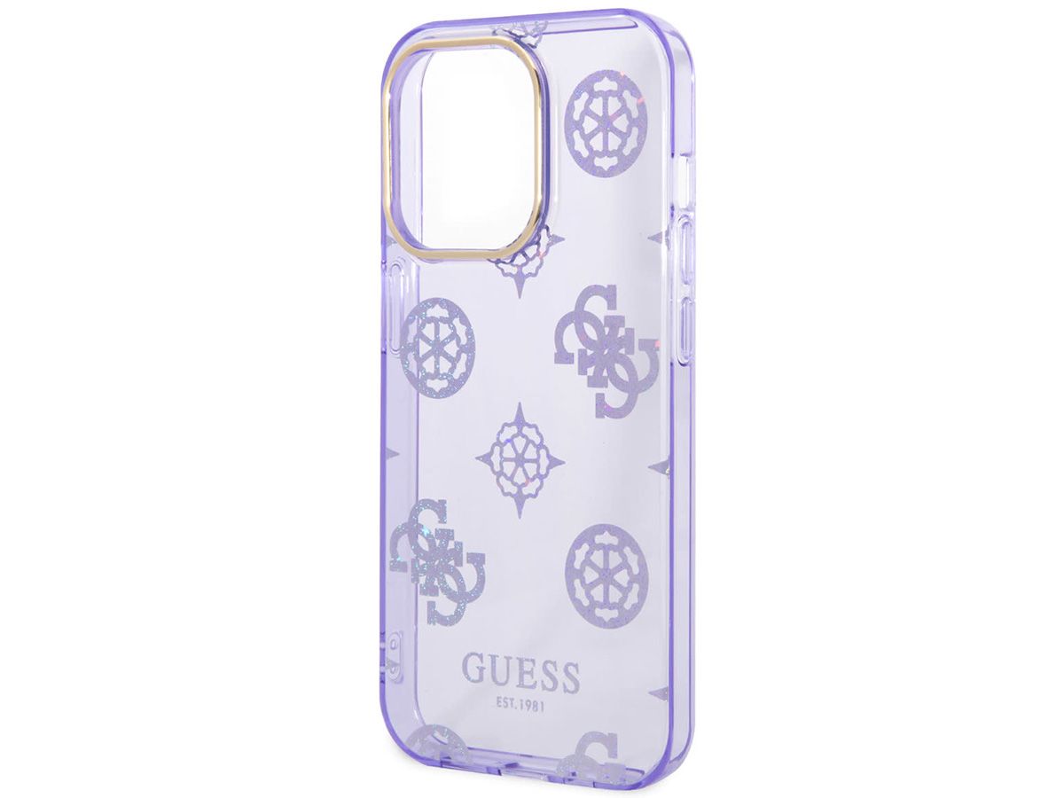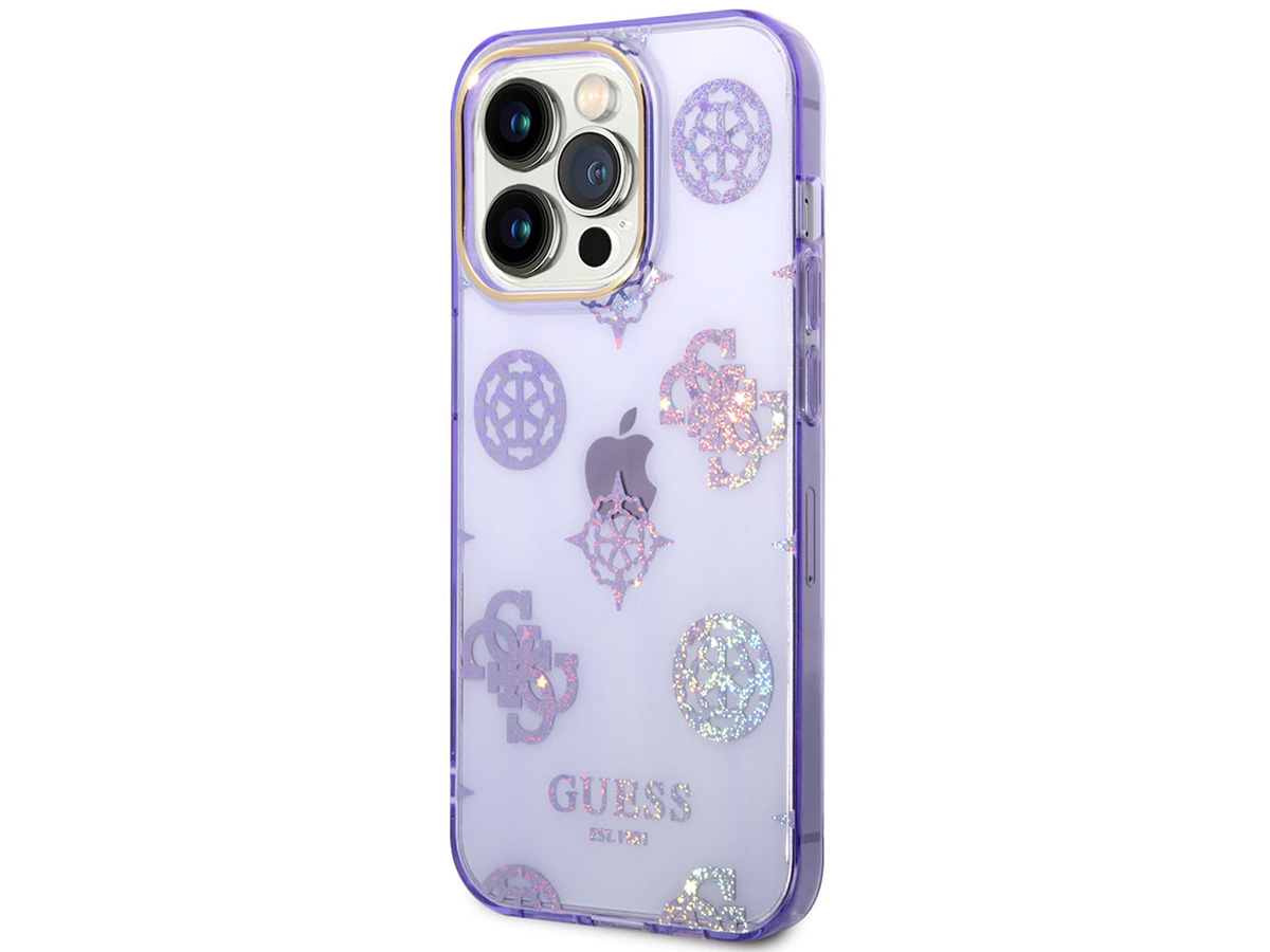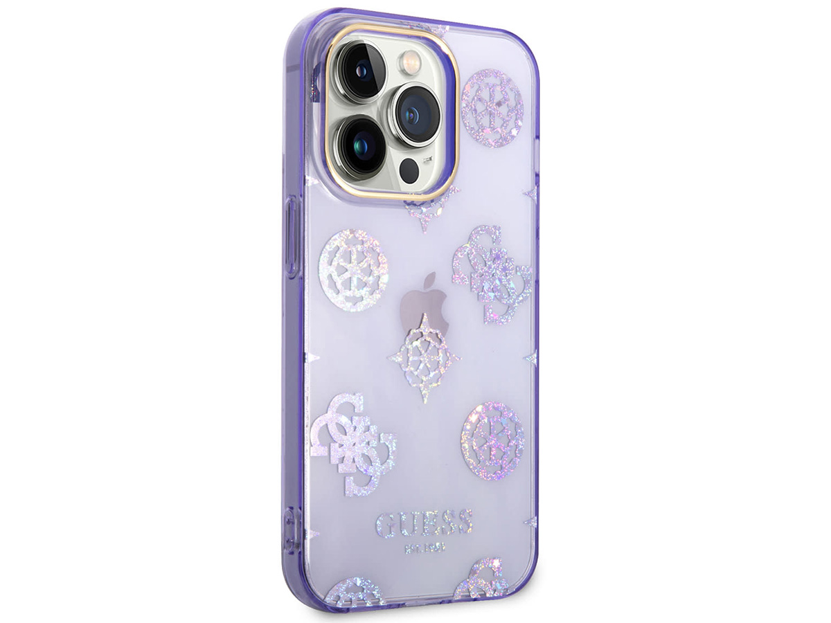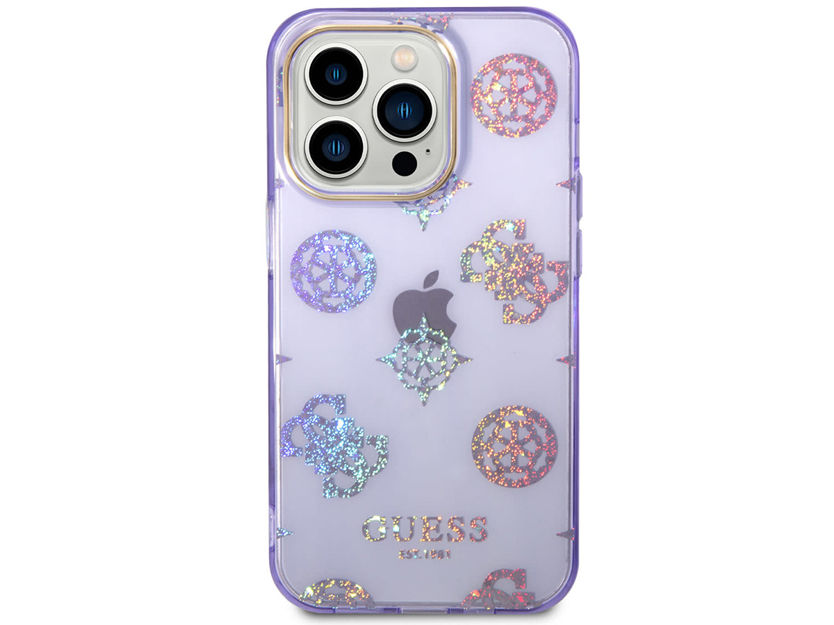 Guess Peony Glitter TPU Case Paars - iPhone 14 Pro Max hoesje