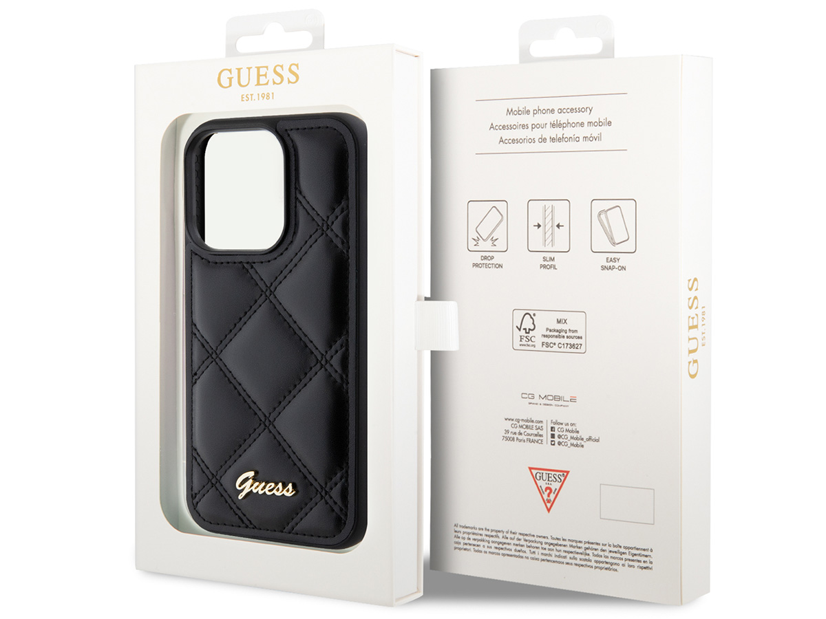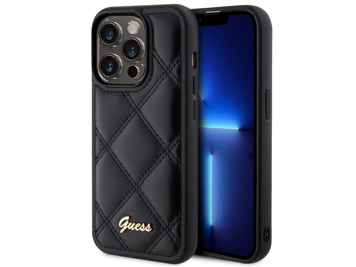 Guess Diamond Quilted Puffer Case Zwart - iPhone 15 Pro hoesje