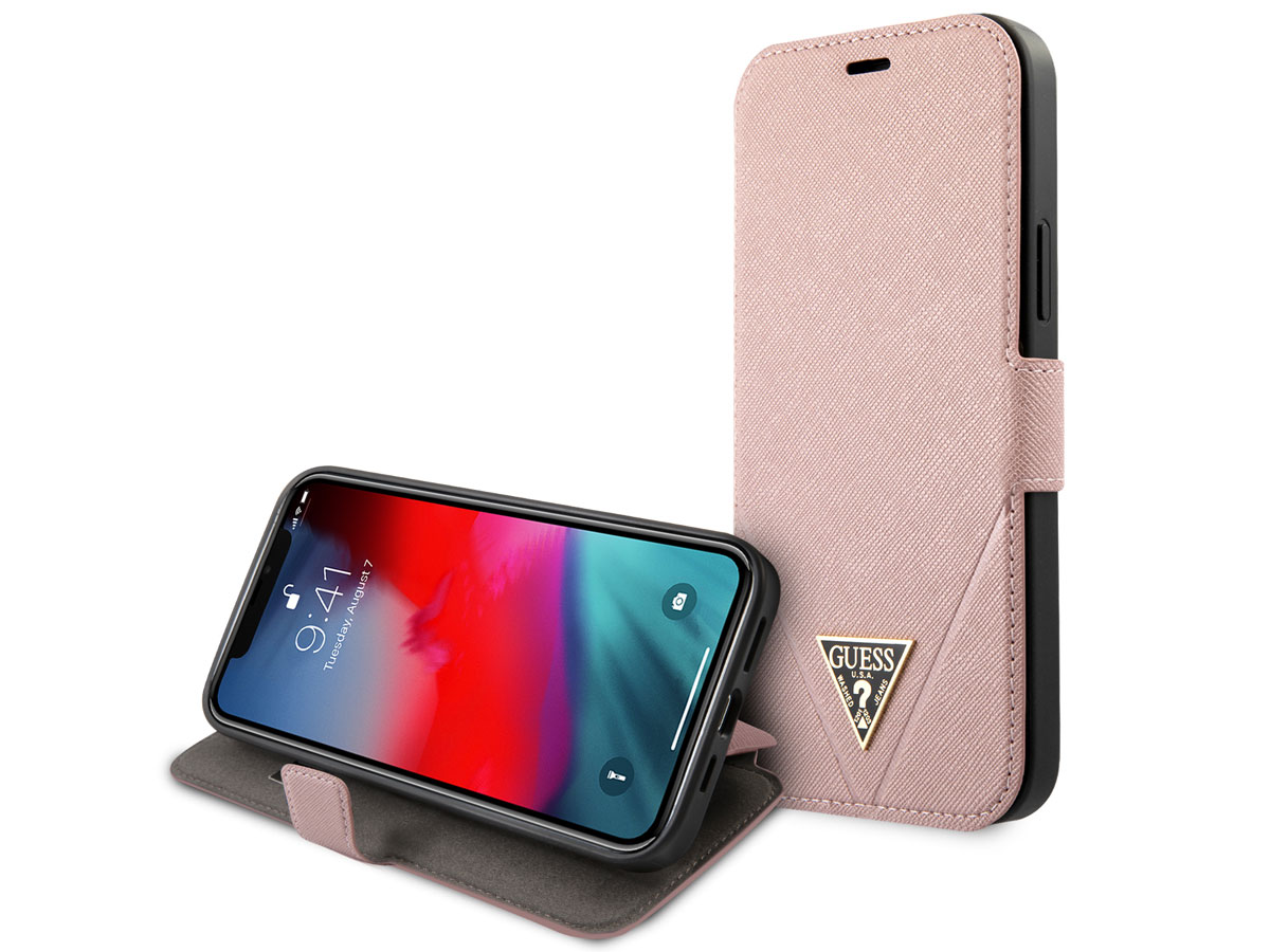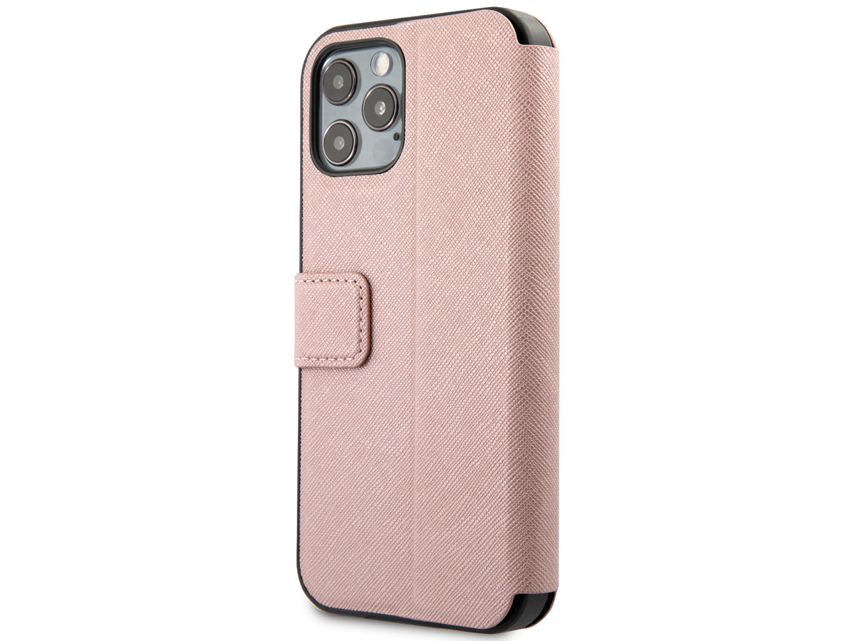 Guess Saffiano BookCase Roze - iPhone 12/12 Pro hoesje