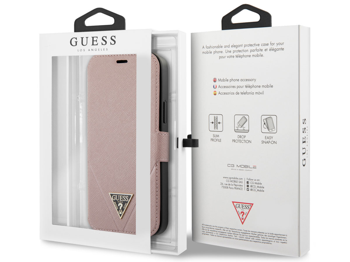 Guess Saffiano BookCase Roze - iPhone 12 Pro Max hoesje