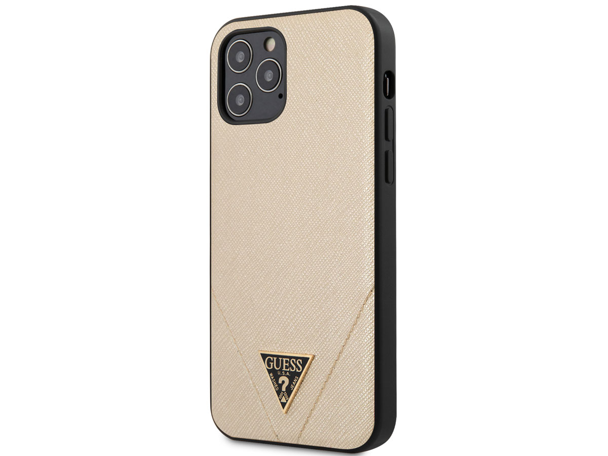 Guess Saffiano Case Goud - iPhone 12 Pro Max hoesje