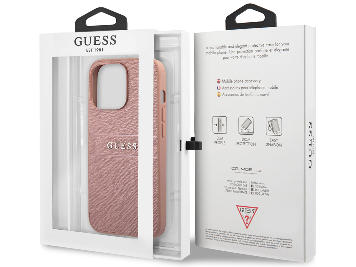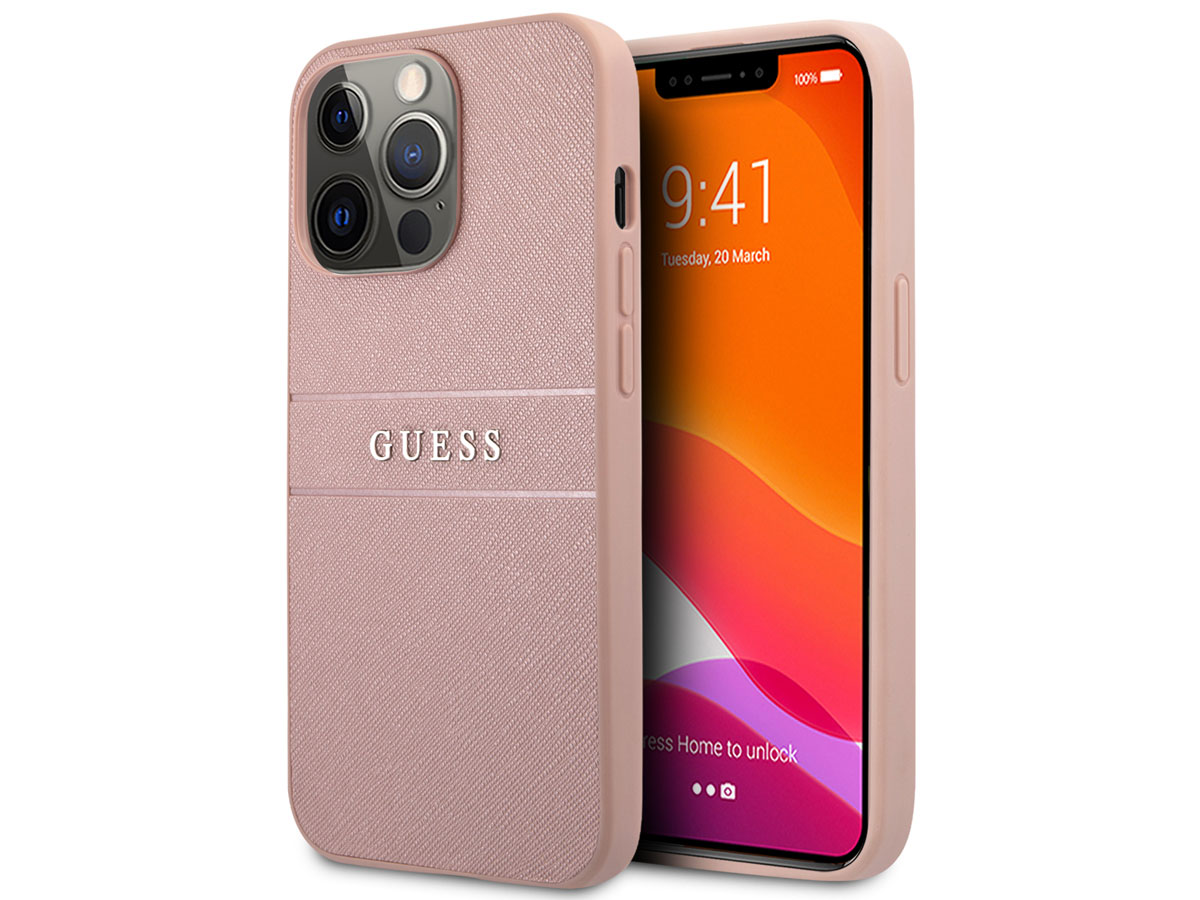 Guess Saffiano Case Roze - iPhone 13 Pro Max hoesje