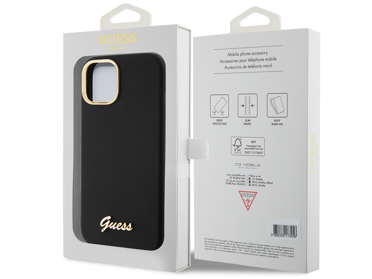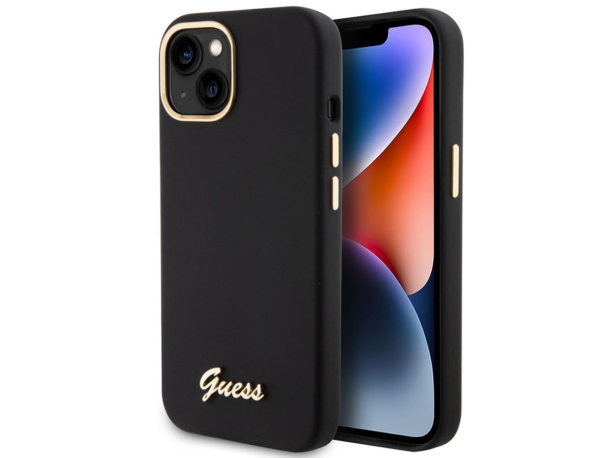 Guess Script Silicone Hard Case Zwart - iPhone 14 Plus/15 Plus hoesje