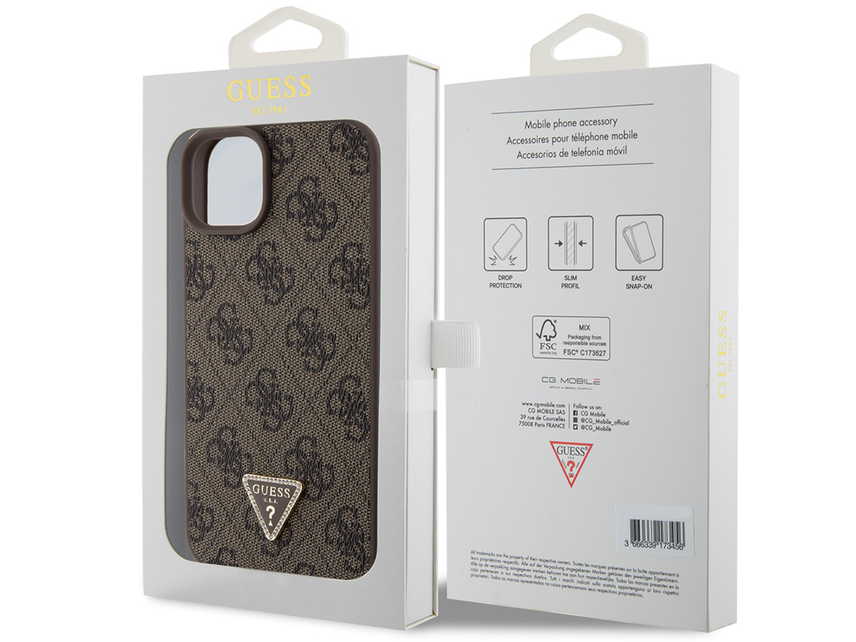 Guess Strass Triangle Monogram Case Bruin - iPhone 14 Plus/15 Plus hoesje