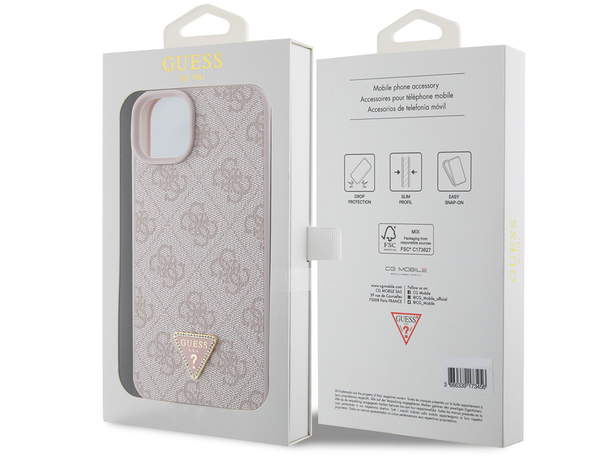 Guess Strass Triangle Monogram Case Roze - iPhone 14 Plus/15 Plus hoesje