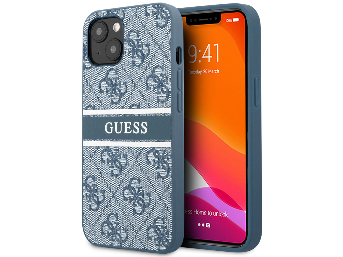 Guess Stripe 4G Monogram Case Blauw - iPhone 13 hoesje