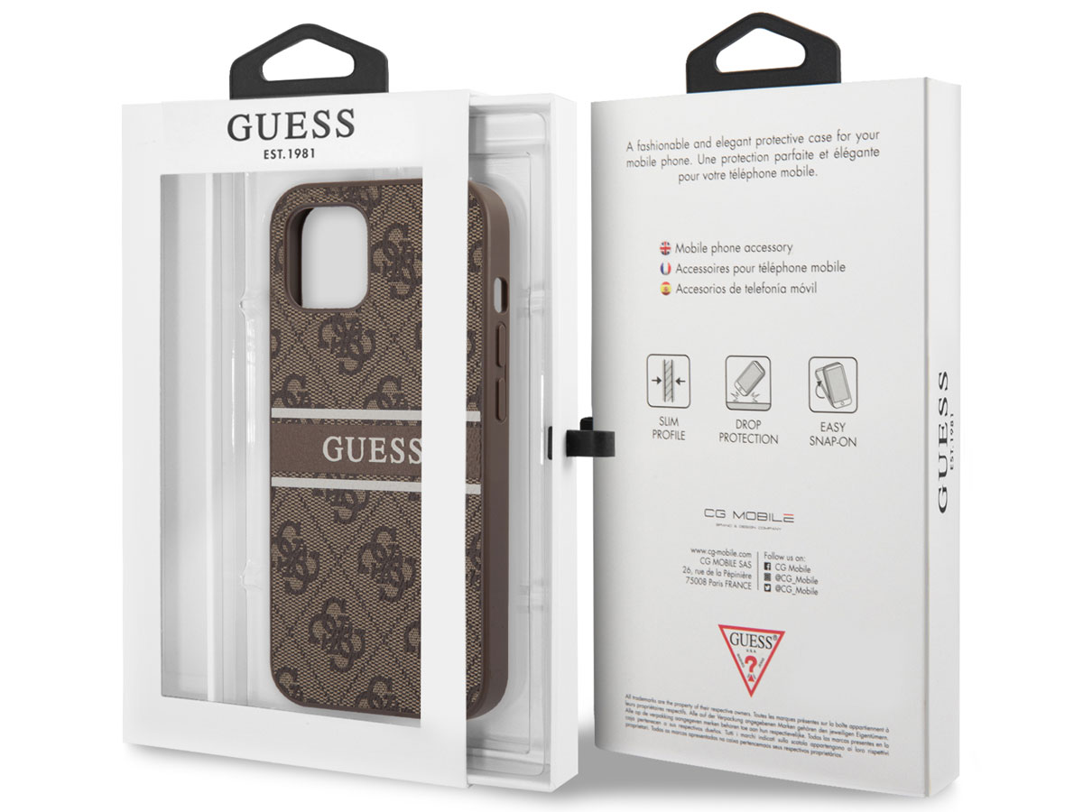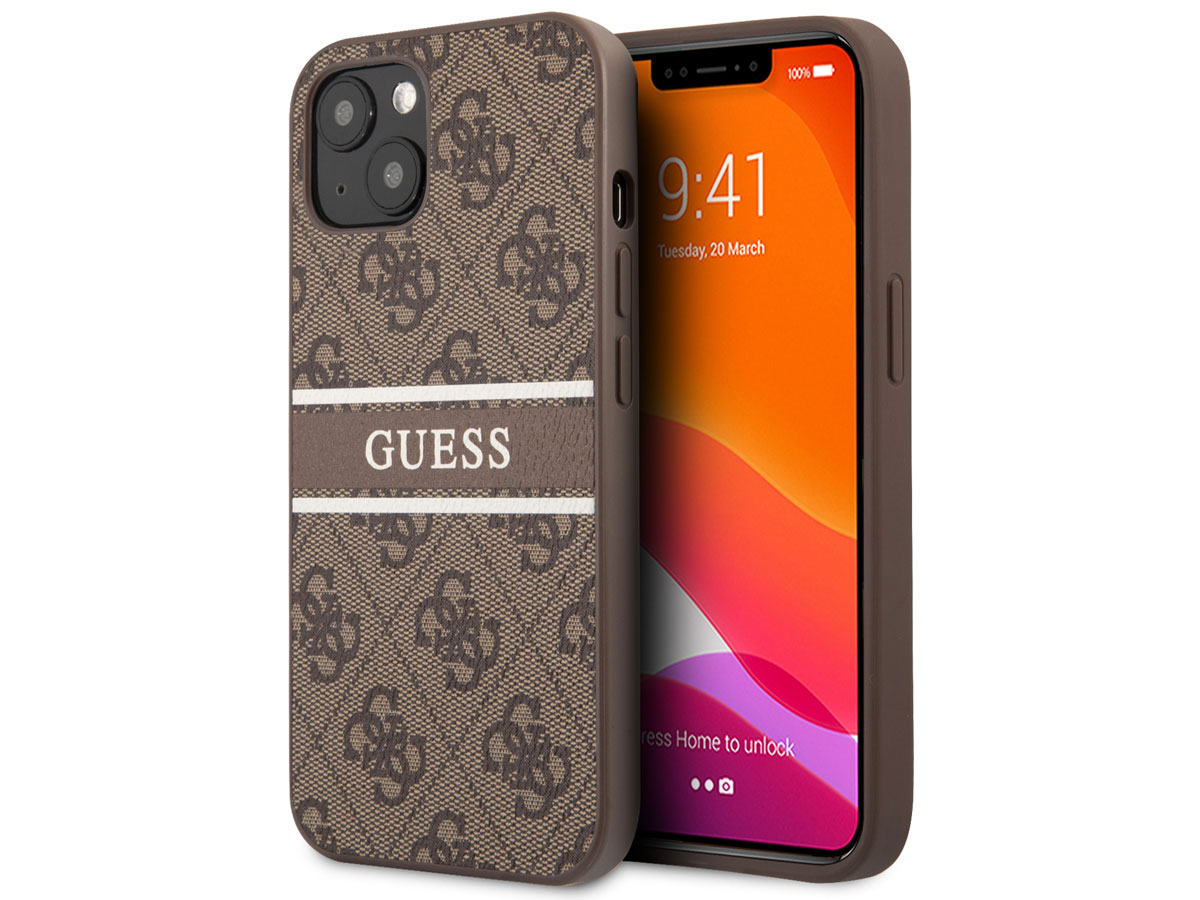 Guess Stripe 4G Monogram Case Bruin - iPhone 13 hoesje