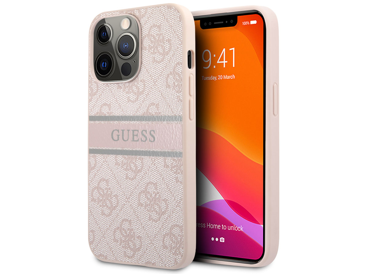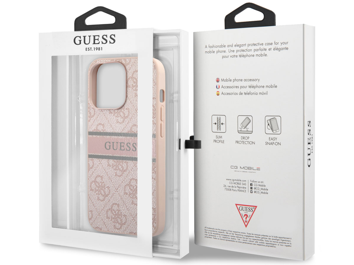Guess Stripe 4G Monogram Case Roze - iPhone 13 Pro Max hoesje