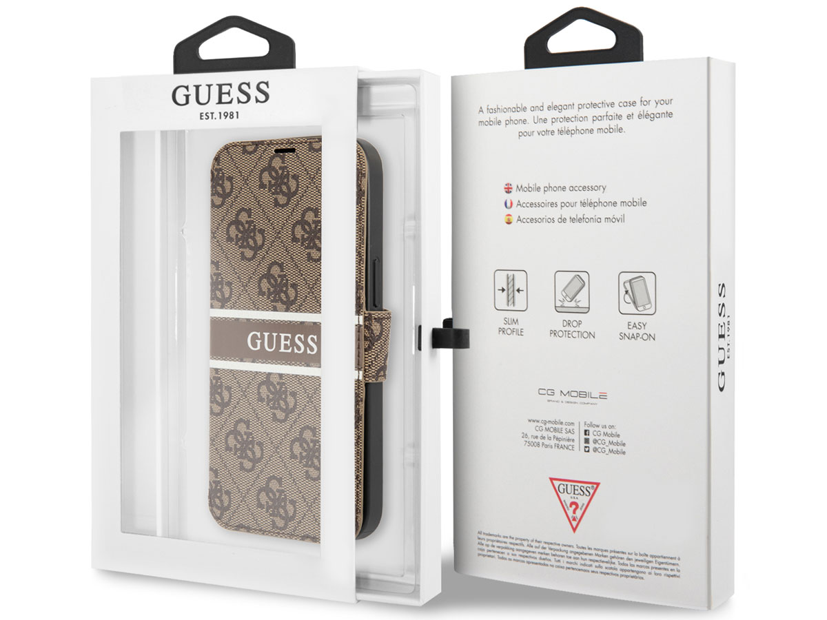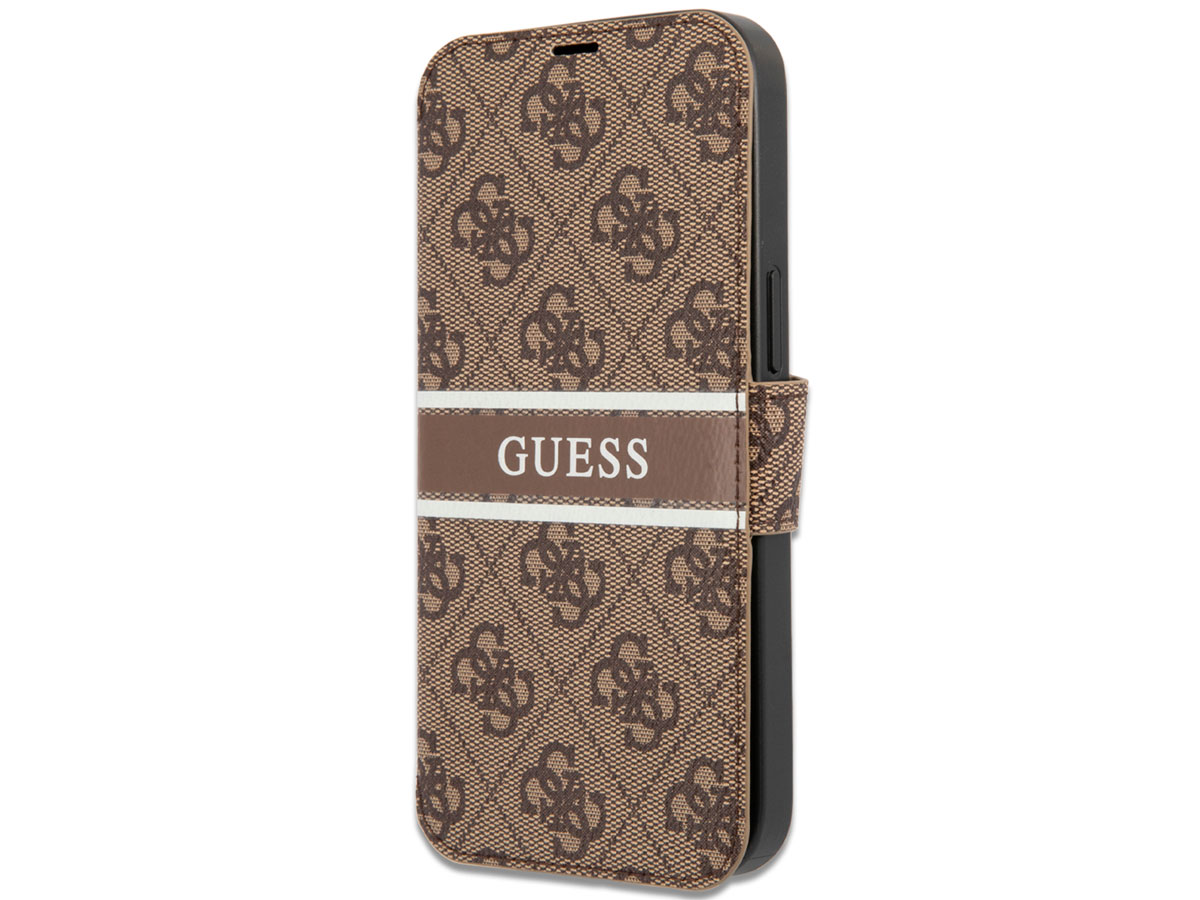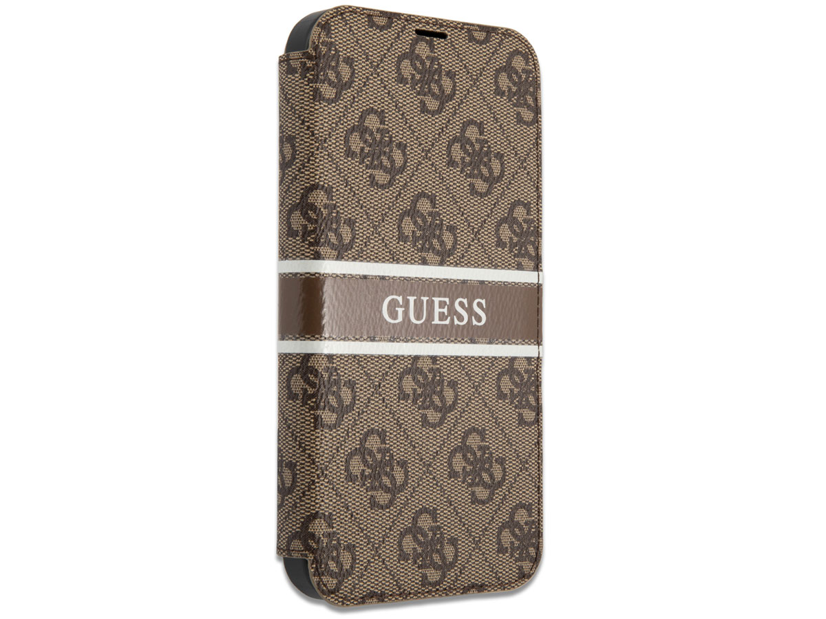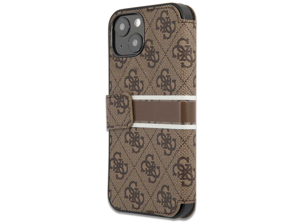 Guess Stripe 4G Monogram BookCase Bruin - iPhone 13 hoesje