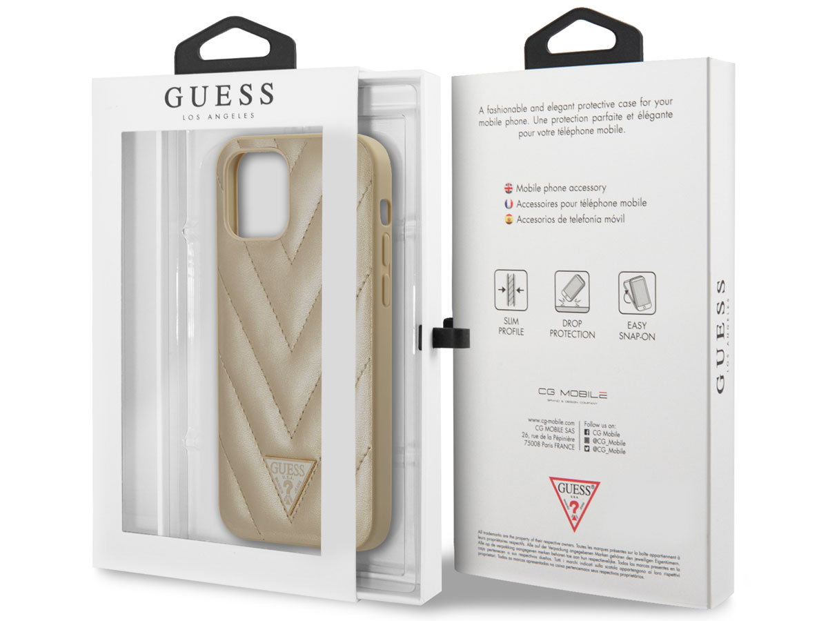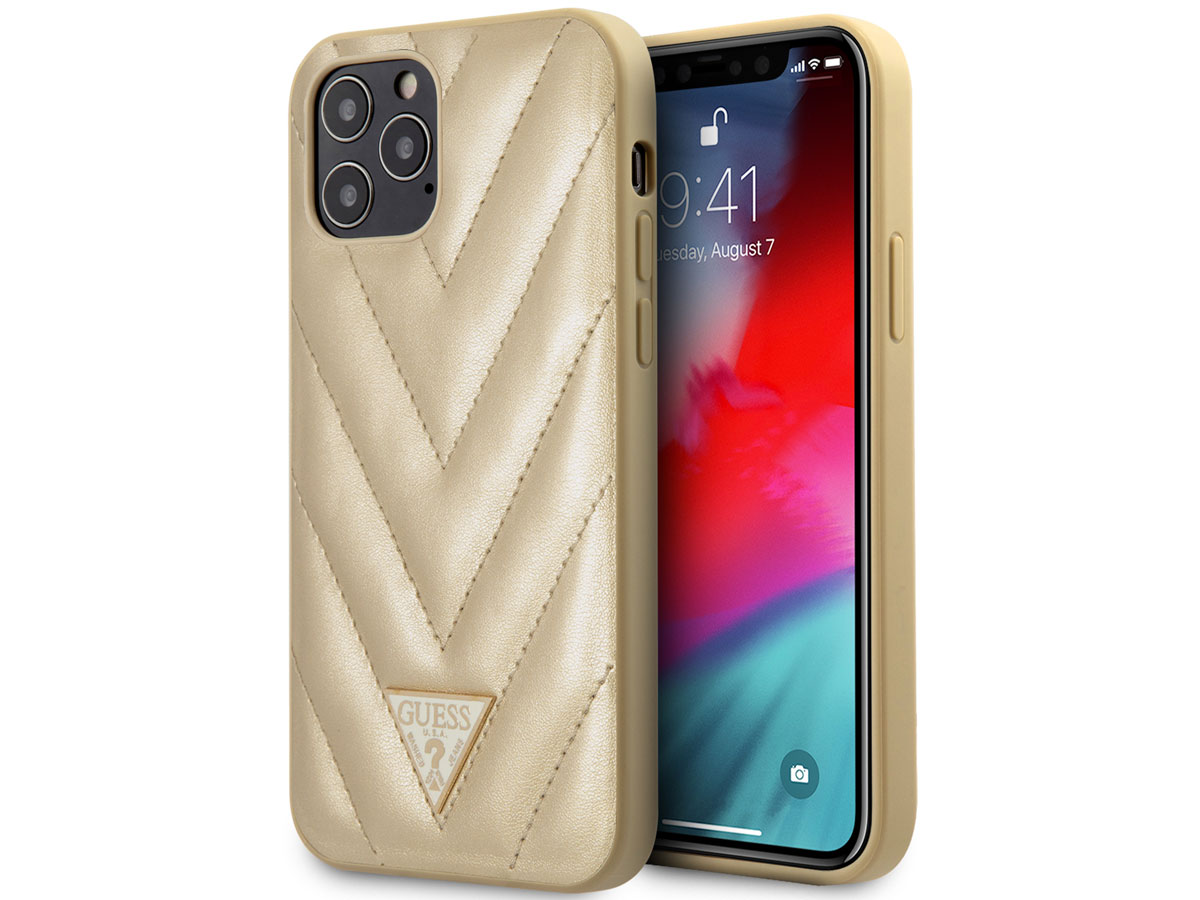Guess V-Quilted Case Goud - iPhone 12 Pro Max hoesje