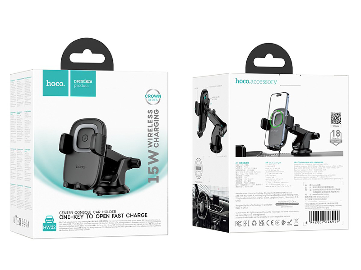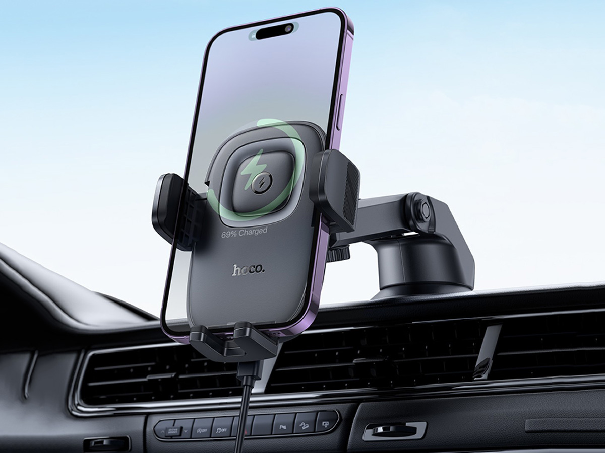 De Hoco Charging Telescopic Dash Mount is een universele telefoonhouder die veiligheid en gebruiksgemak combineert. Met het unieke One Hand Mount-mechanisme kunt u uw telefoon met één hand bevestigen en losmaken, terwijl de ingebouwde draadloze oplader uw toestel altijd opgeladen houdt: hoe lang de reis ook is!